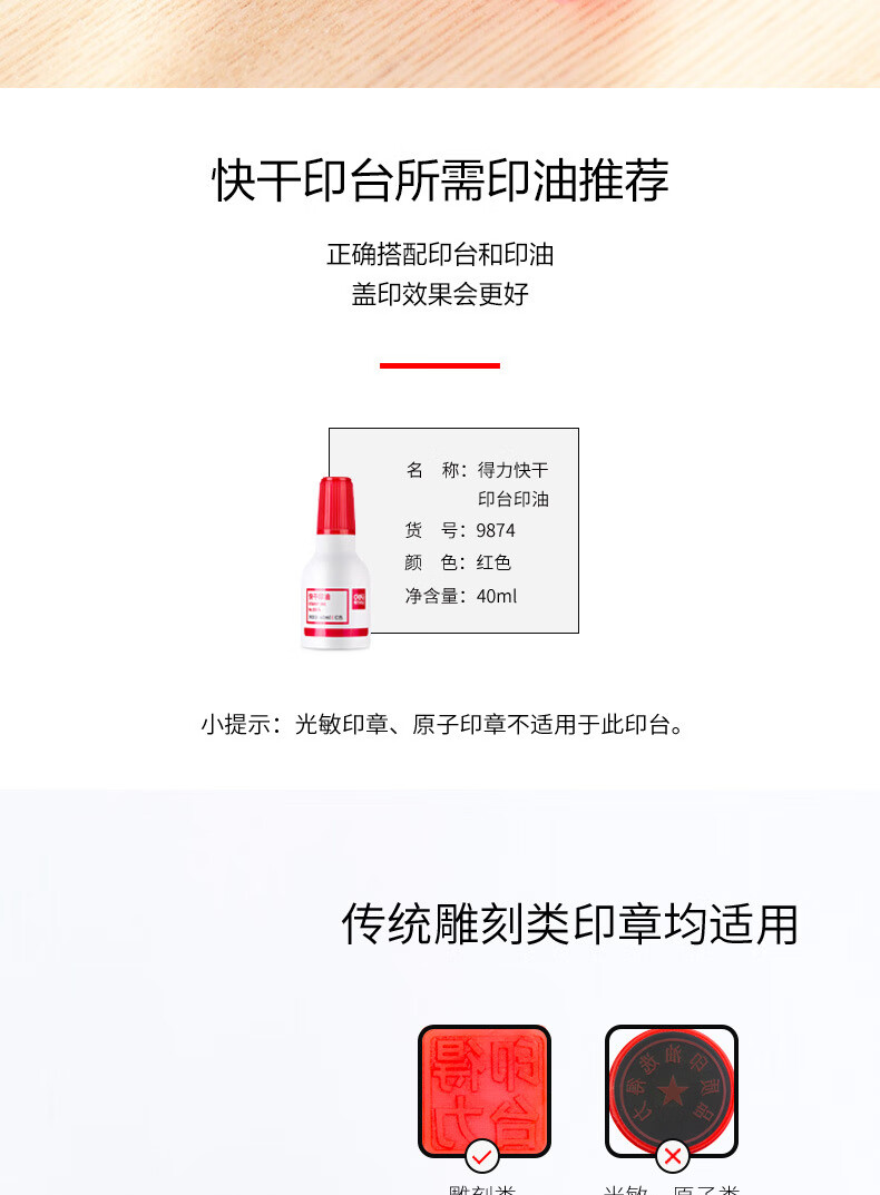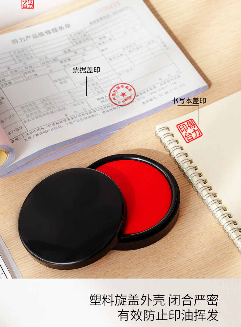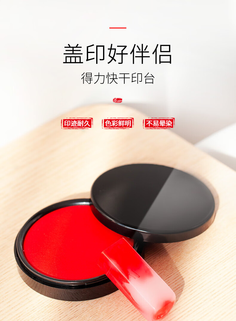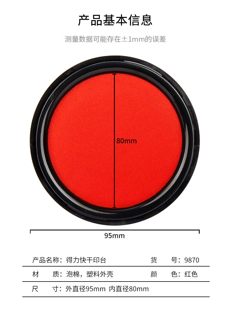 商品名稱:得力9870 印臺 φ95mm圓形塑殼快干印臺印泥 財務辦公用品 紅色(新老混發(fā))