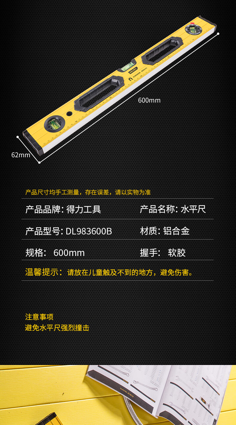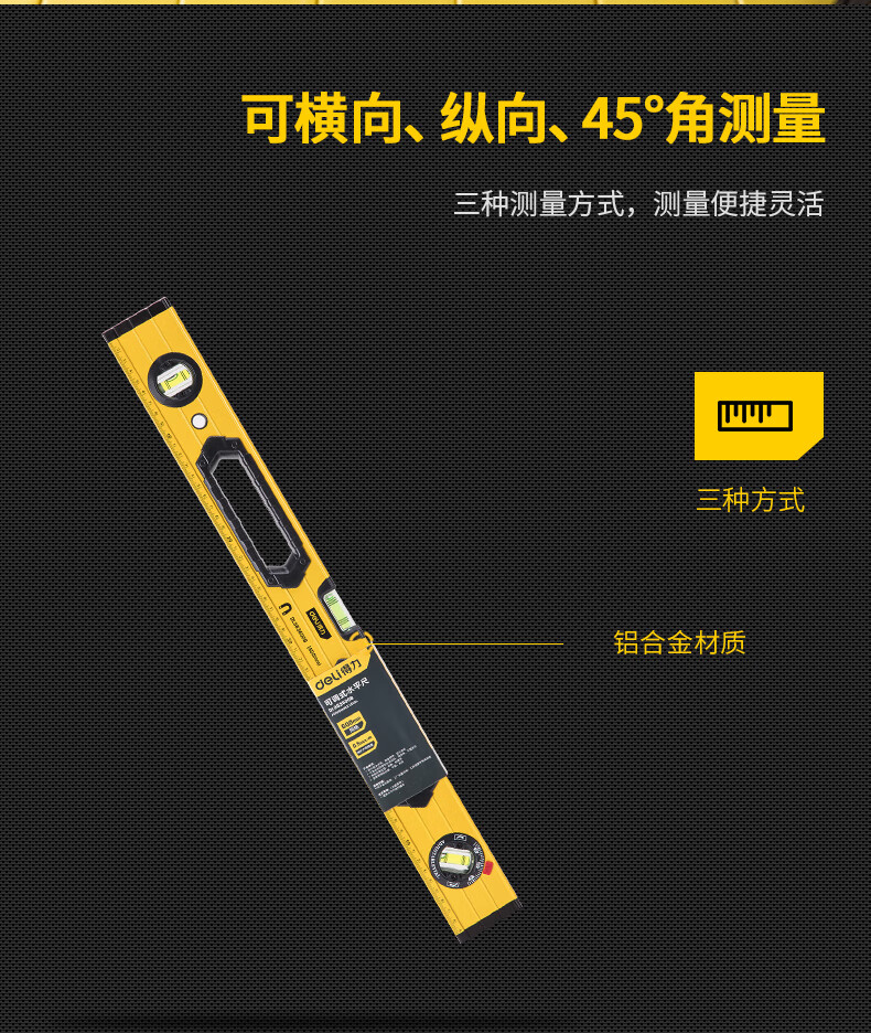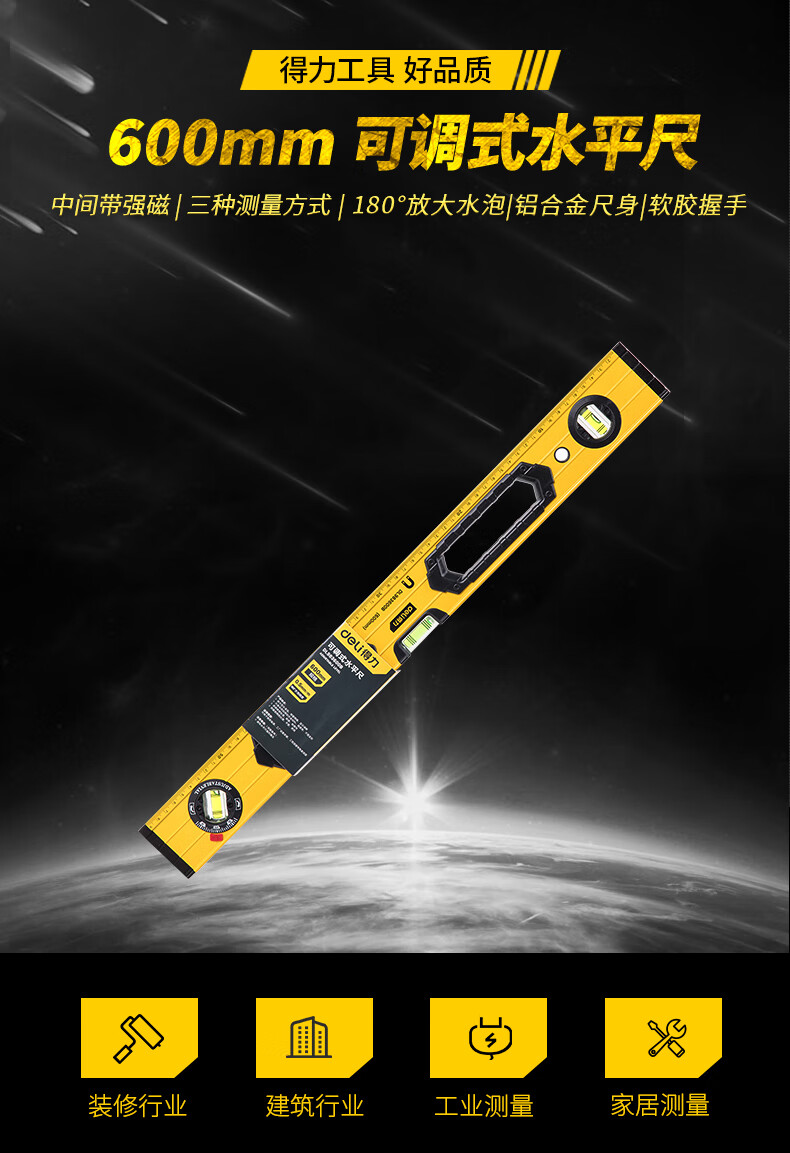 商品名稱(chēng):得力DL983600B 可調(diào)式水平尺 高強(qiáng)磁多角度精度鋁合金水平測(cè)量尺防摔平衡儀600mm