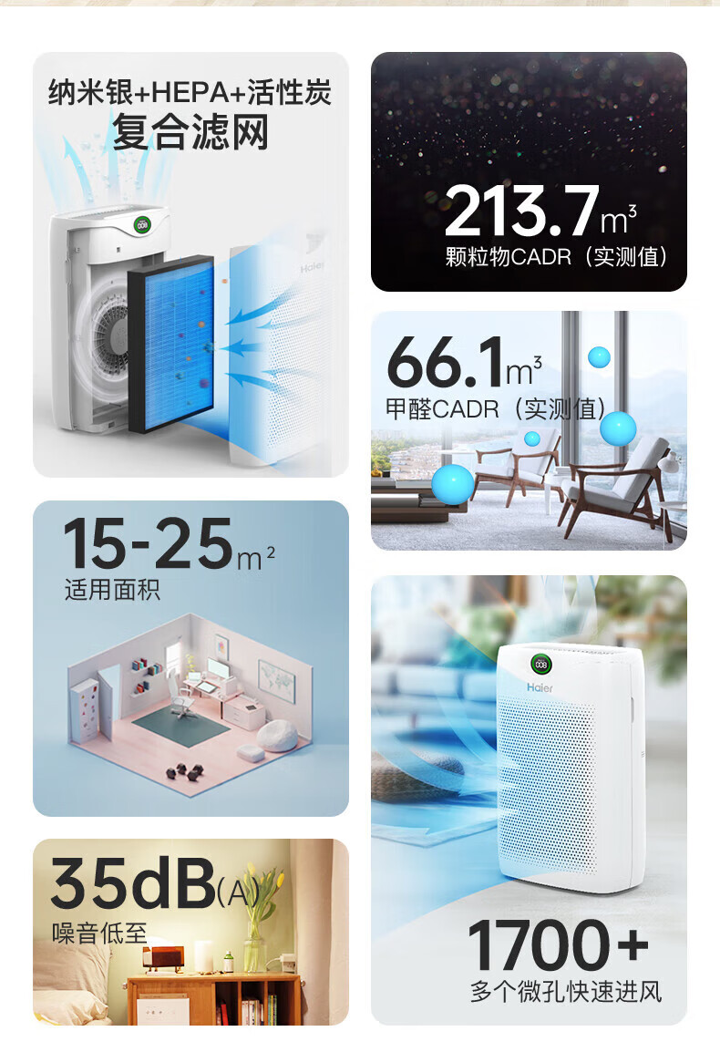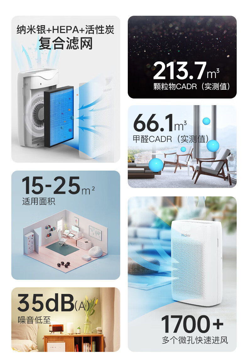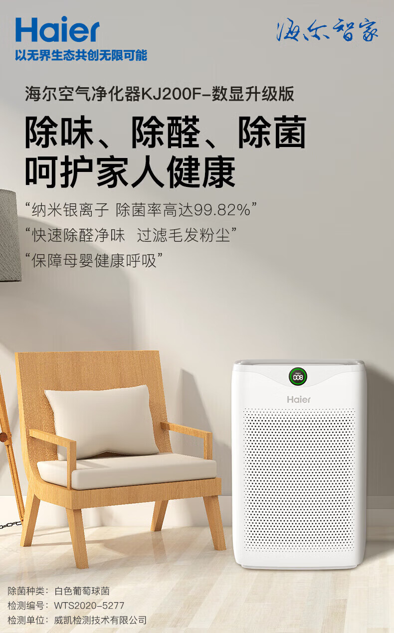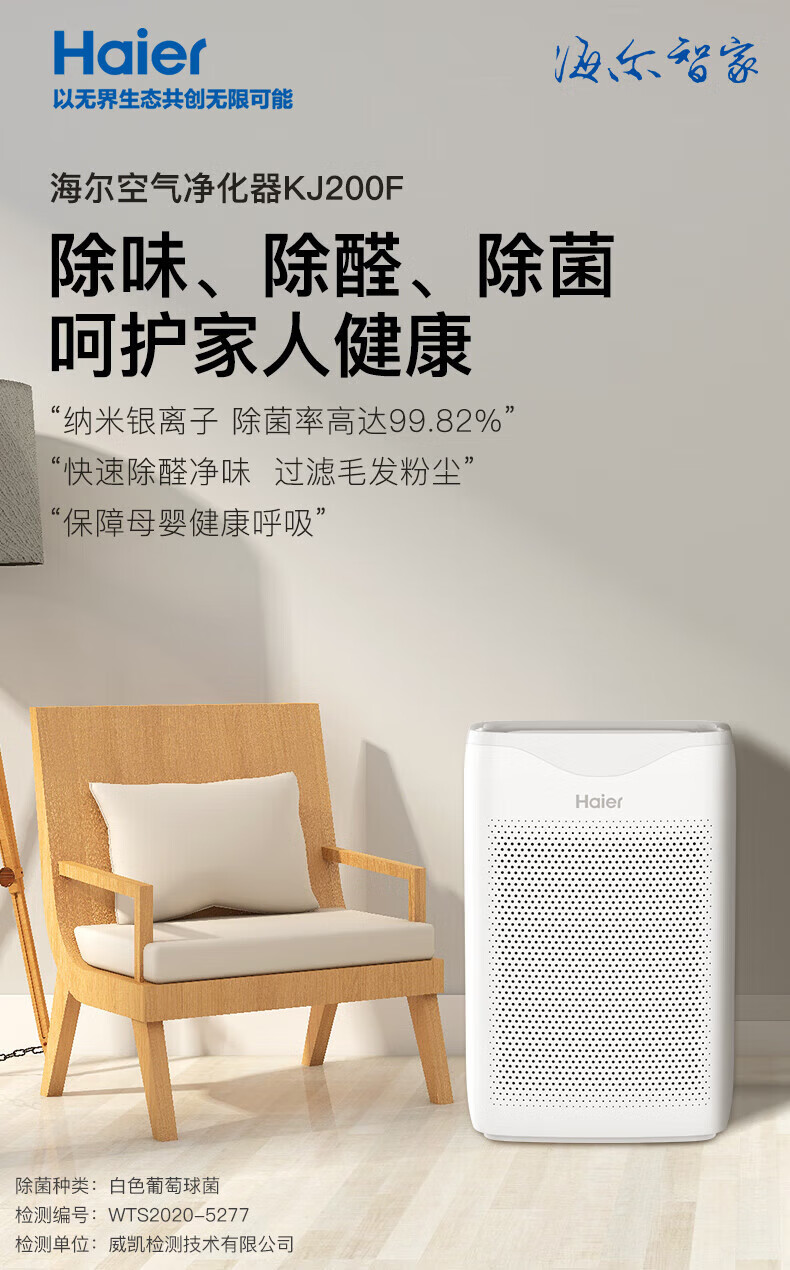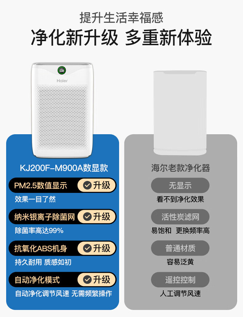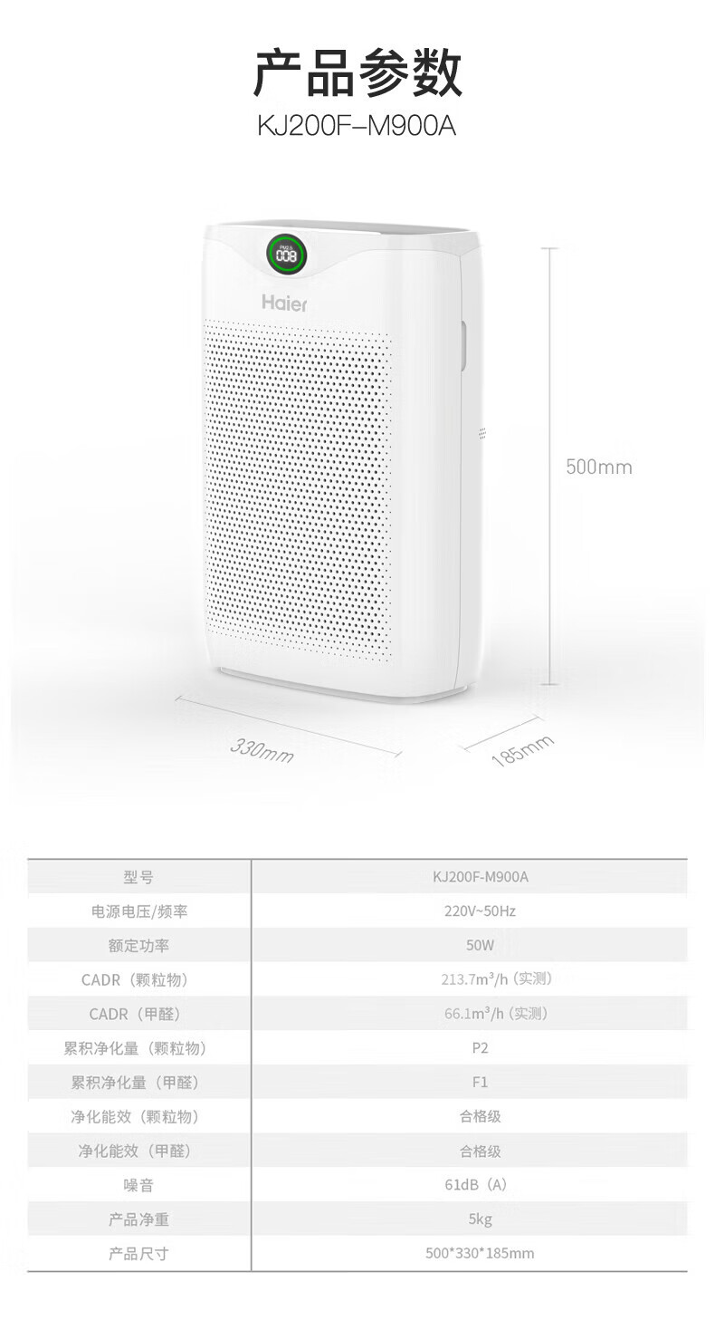 商品名稱(chēng):海爾KJ200F-M900A 空氣凈化器 除甲醛除霧霾除煙味母嬰家用除灰塵殺菌