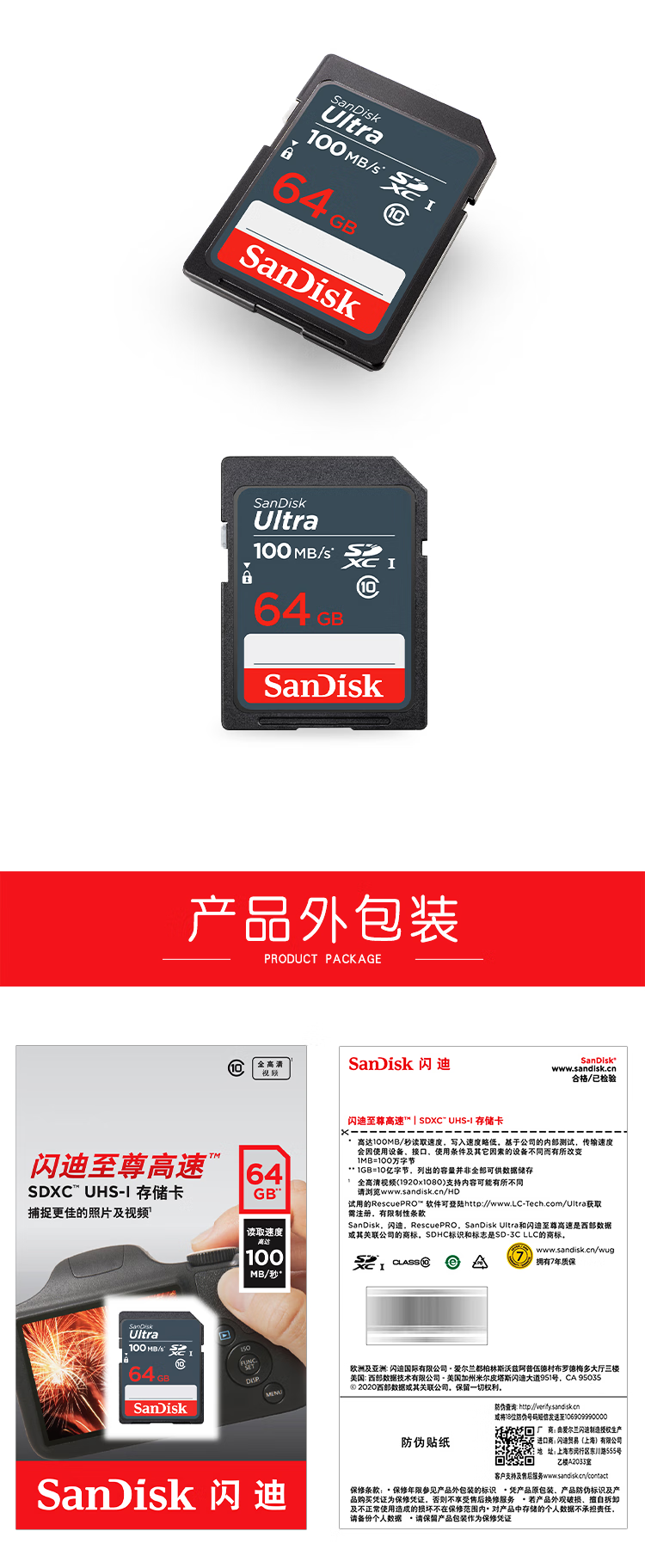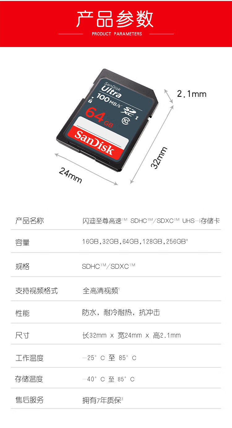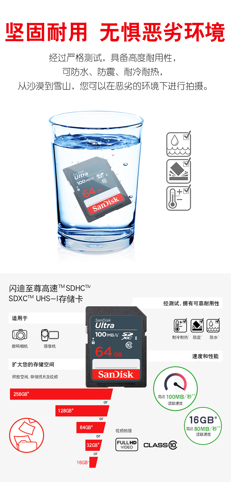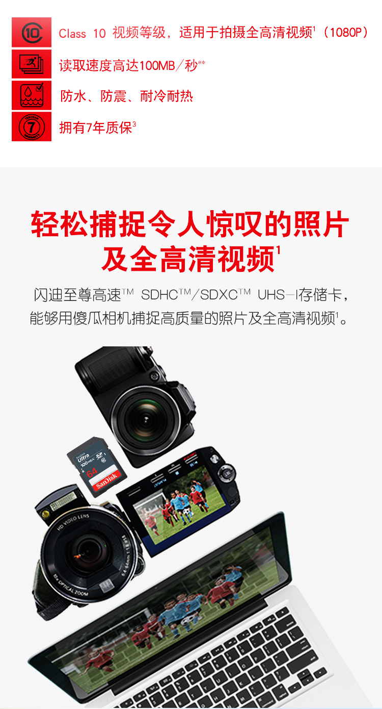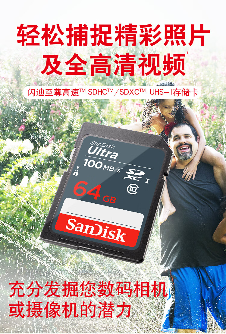 商品名稱:閃迪 64GB SD內(nèi)存卡 至尊高速版讀速100MB/s 數(shù)碼相機 攝像機存儲卡 支持高清視頻