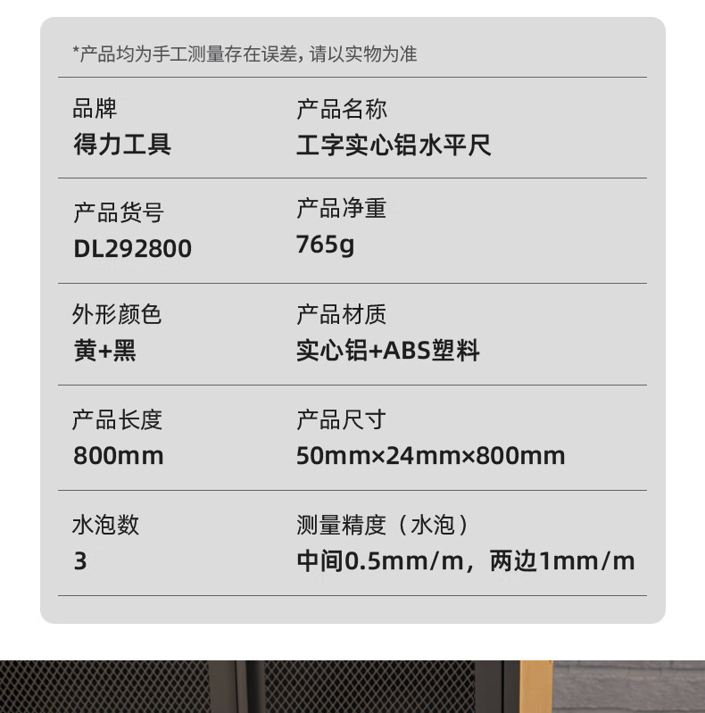 商品名稱:得力DL292800 水平尺 高精度多功能裝修家用水泡平水平衡尺實(shí)心鑄鋁800mm