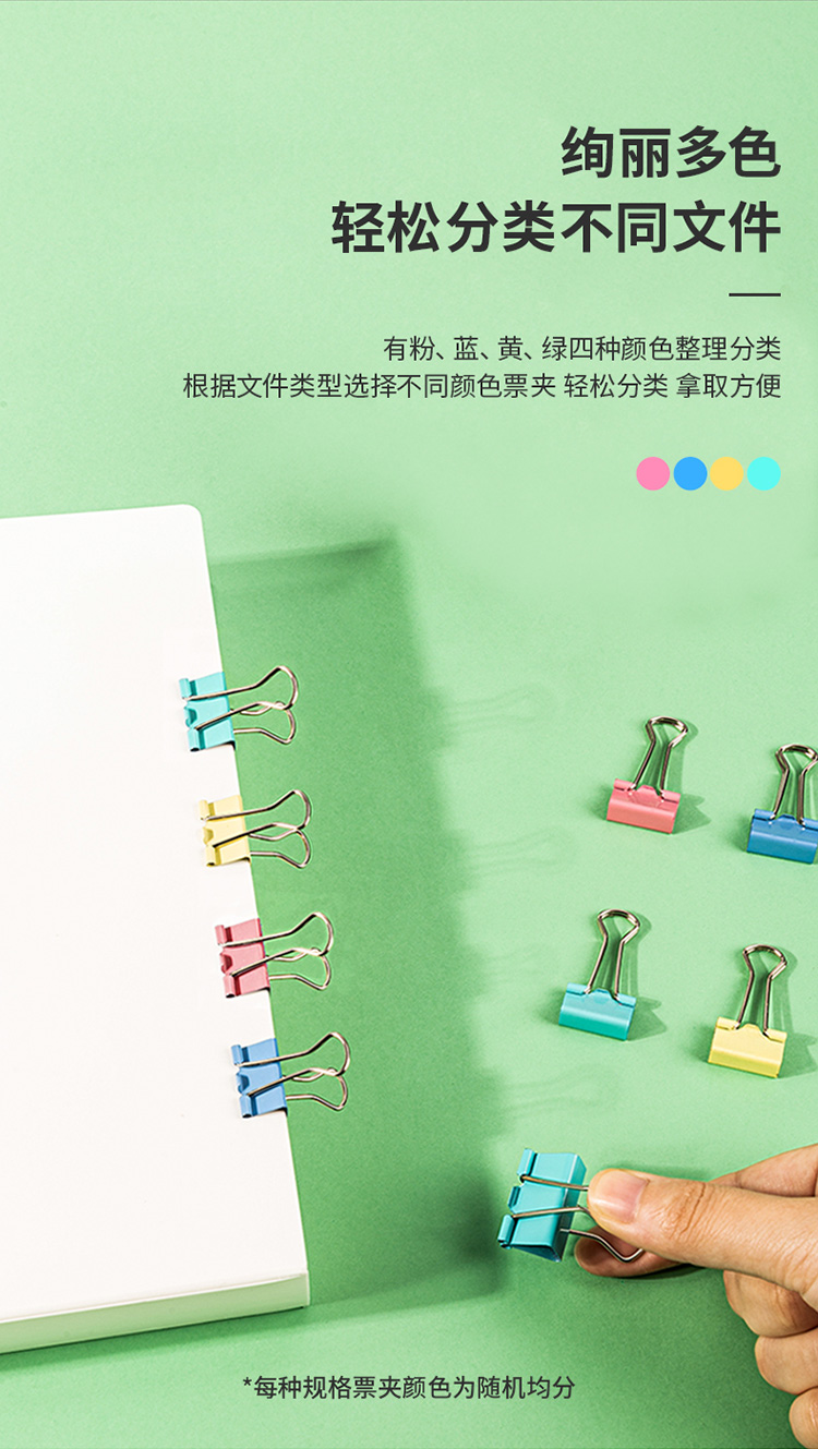 商品名稱:得力8554ES 彩色長尾夾 4#25mm中號金屬票夾燕尾夾票據(jù)文件夾子 辦公用品 48只/筒