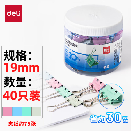商品名稱:得力8555S 省力長尾夾 5#19mm彩色金屬票夾燕尾夾票據(jù)夾子 辦公用品 40只/筒