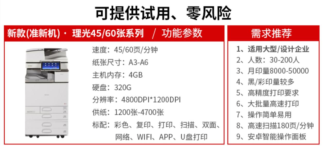 商品名稱(chēng):理光復(fù)印機(jī)租賃 茂名出租A3A4激光彩色黑白復(fù)合機(jī)(月)