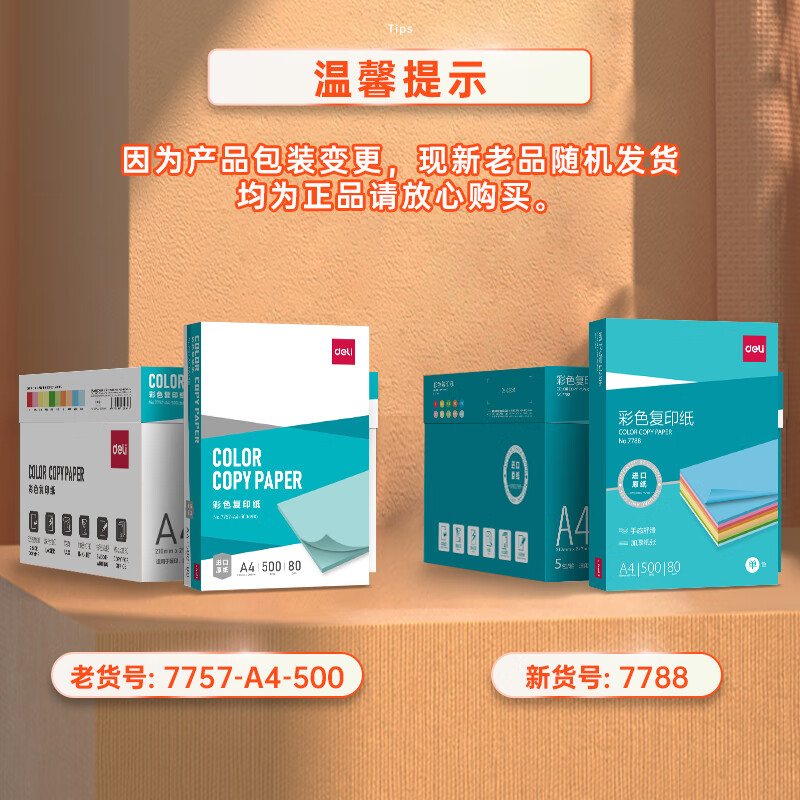 商品名稱:得力7788 彩紙復(fù)印紙 80g/A4非厚卡紙兒童手工紙打印紙 5包/箱 (2500張/箱)