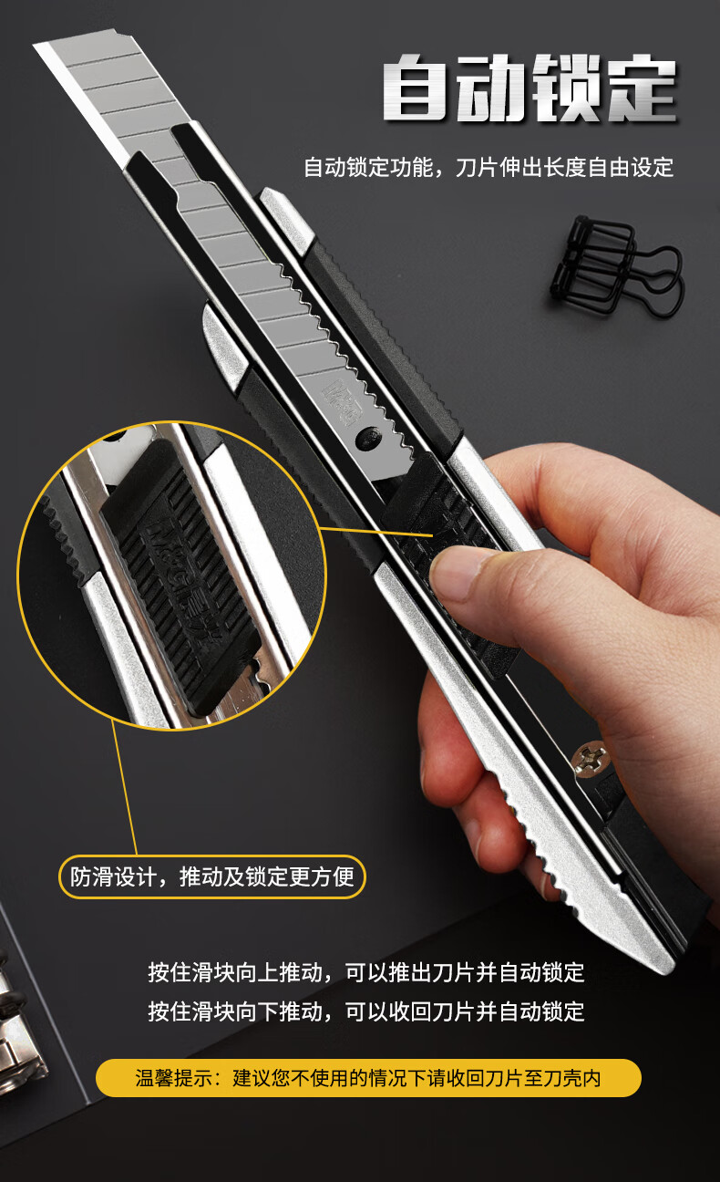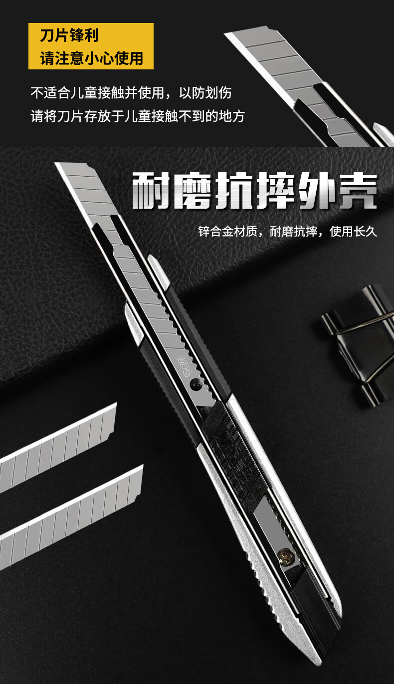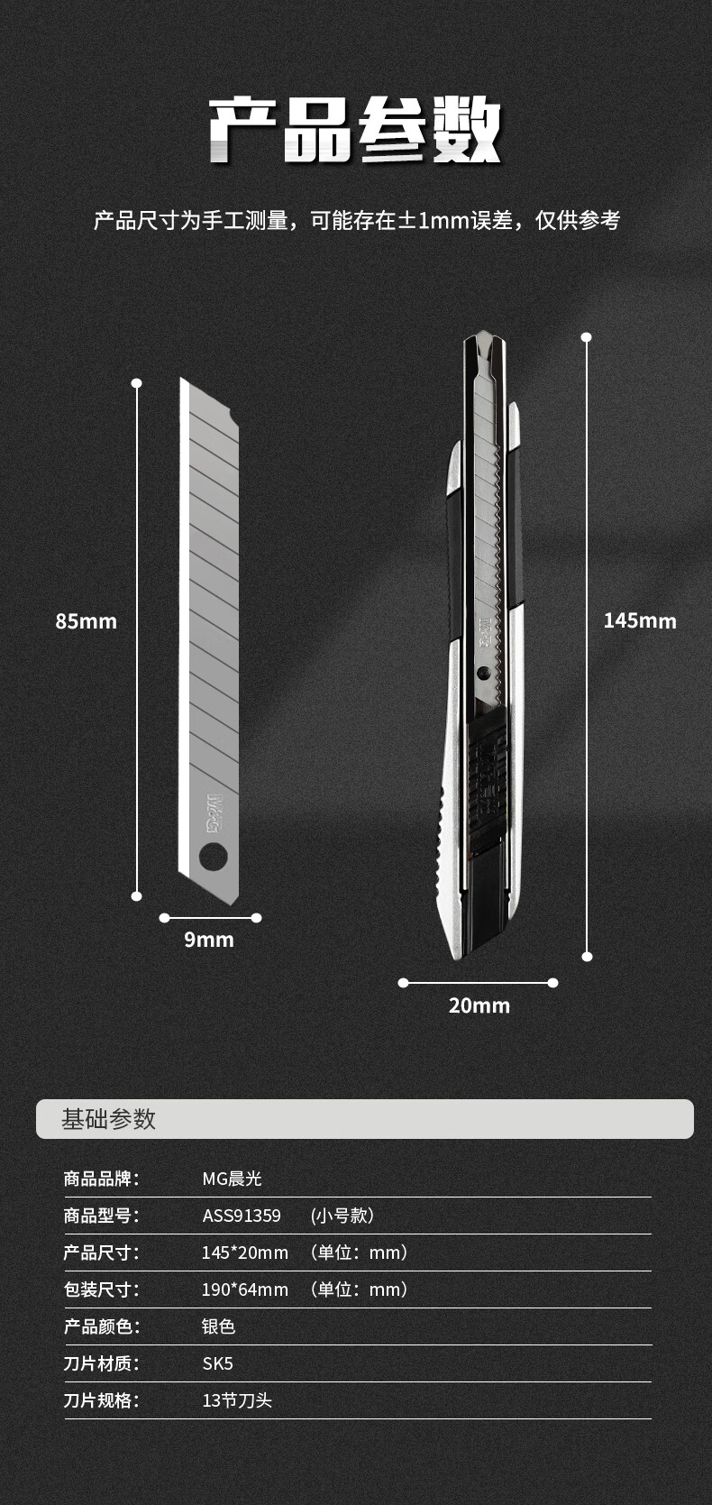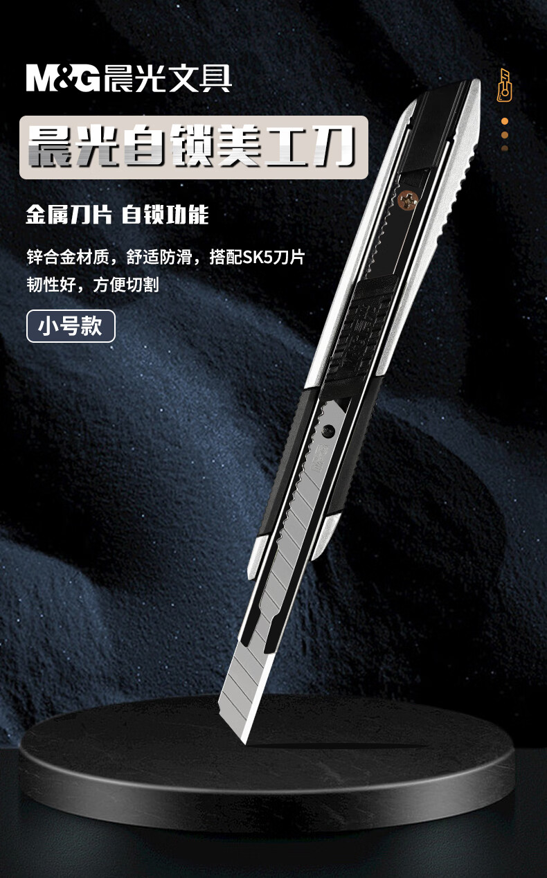 商品名稱:晨光ASS91359 小號美工刀 9mm鋅合金金屬自鎖裁紙刀壁紙刀 銀色單把裝