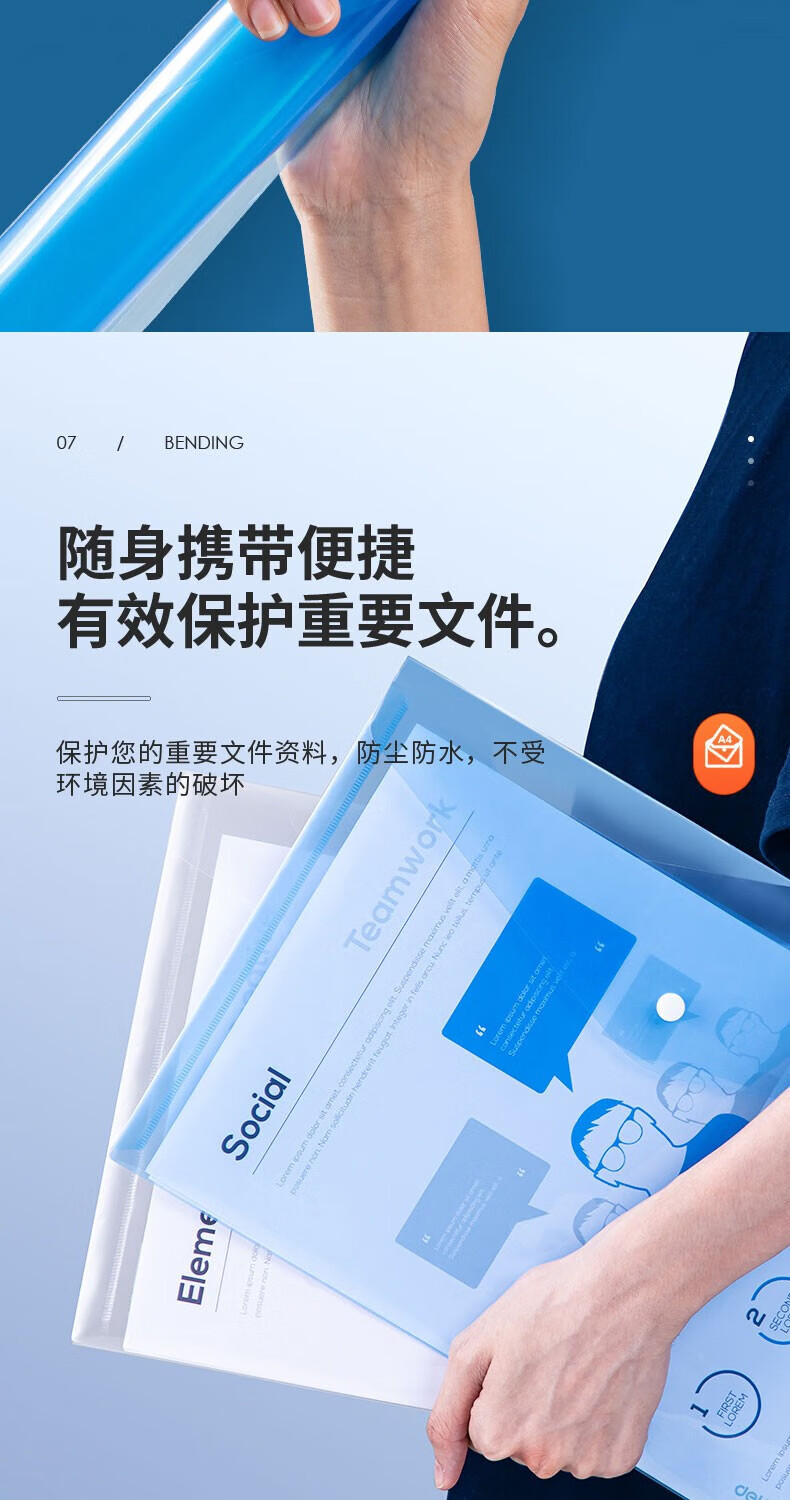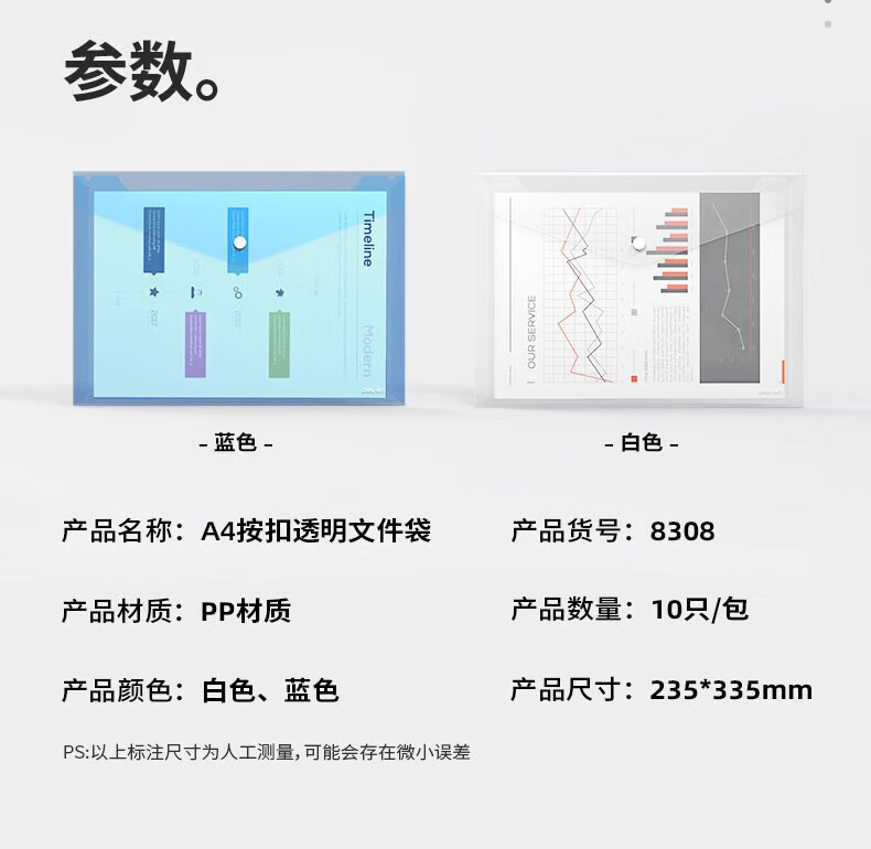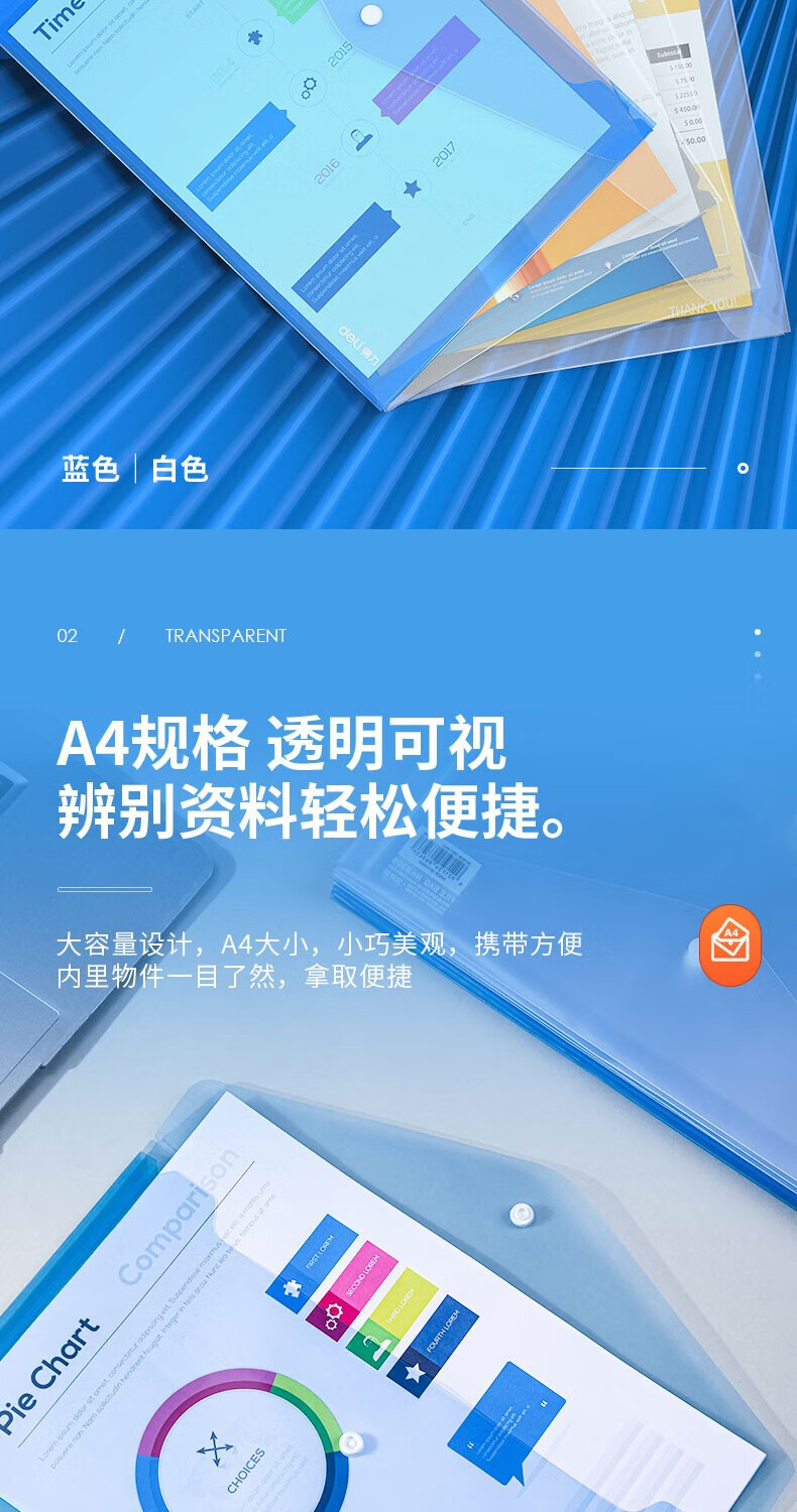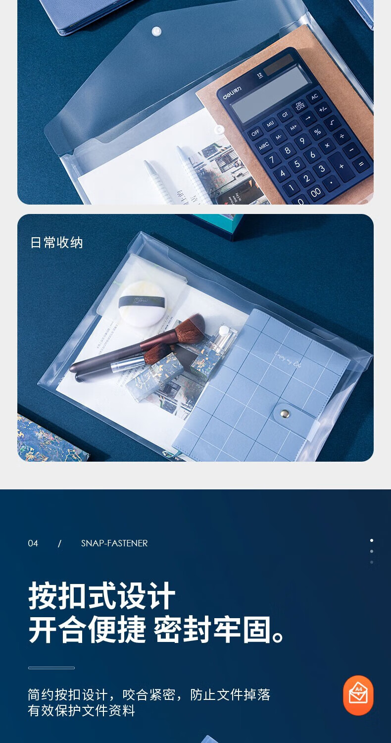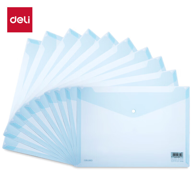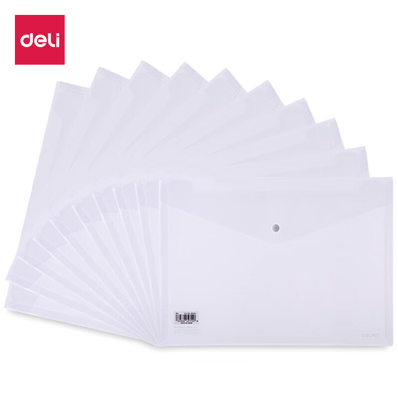 商品名稱:得力8308 透明文件袋 A4按扣資料袋 塑料檔案袋 文件保護 票據學生試卷收納袋 10只/包