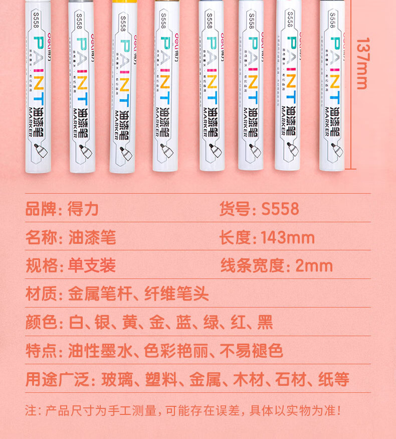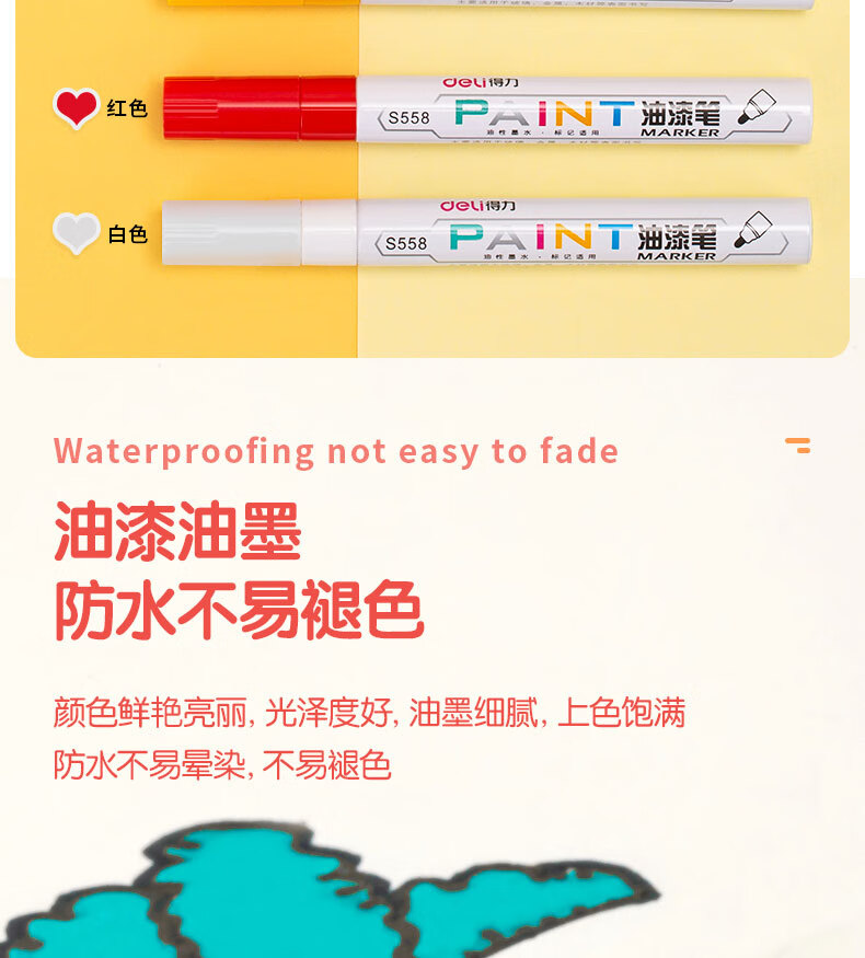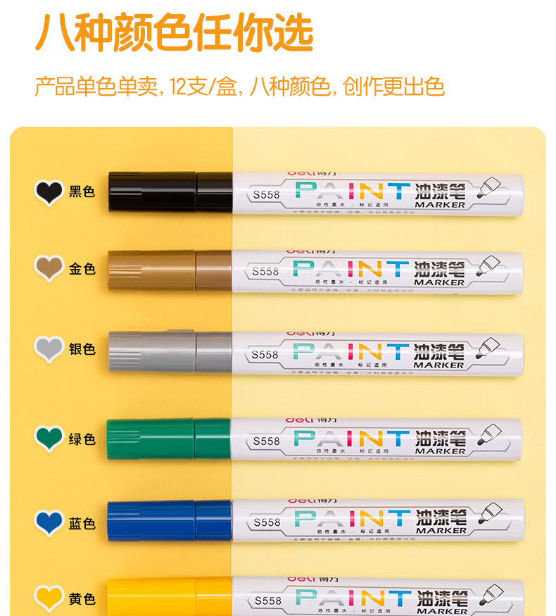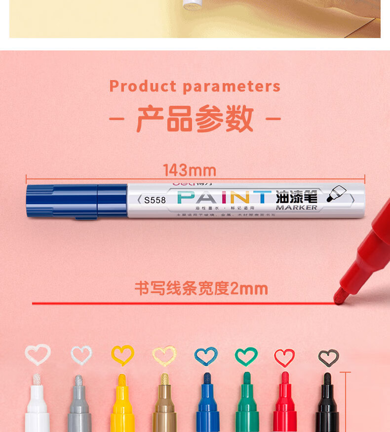 商品名稱:得力S558 油漆筆 粗桿修補記號筆 手繪涂鴉筆 2.0mm防水不掉色簽名筆簽到筆 單支裝
