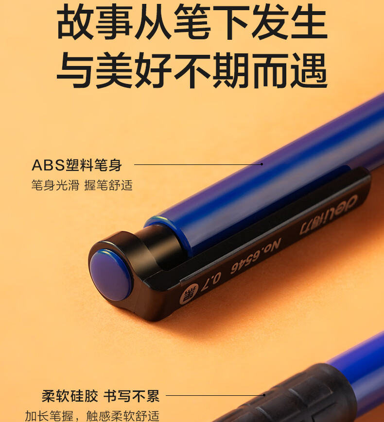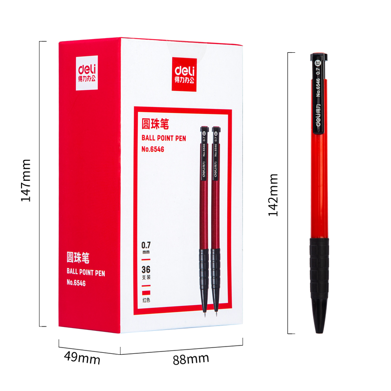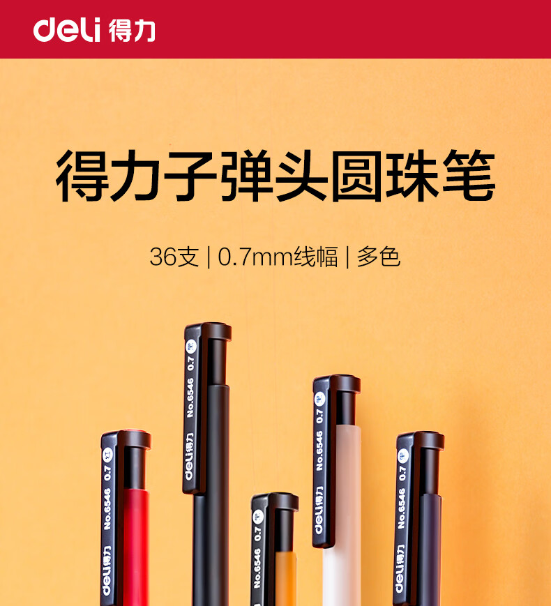 商品名稱:得力6546 圓珠筆 中油筆 0.7mm子彈頭軟膠握手原子筆按動(dòng)筆 辦公用品 36支/盒