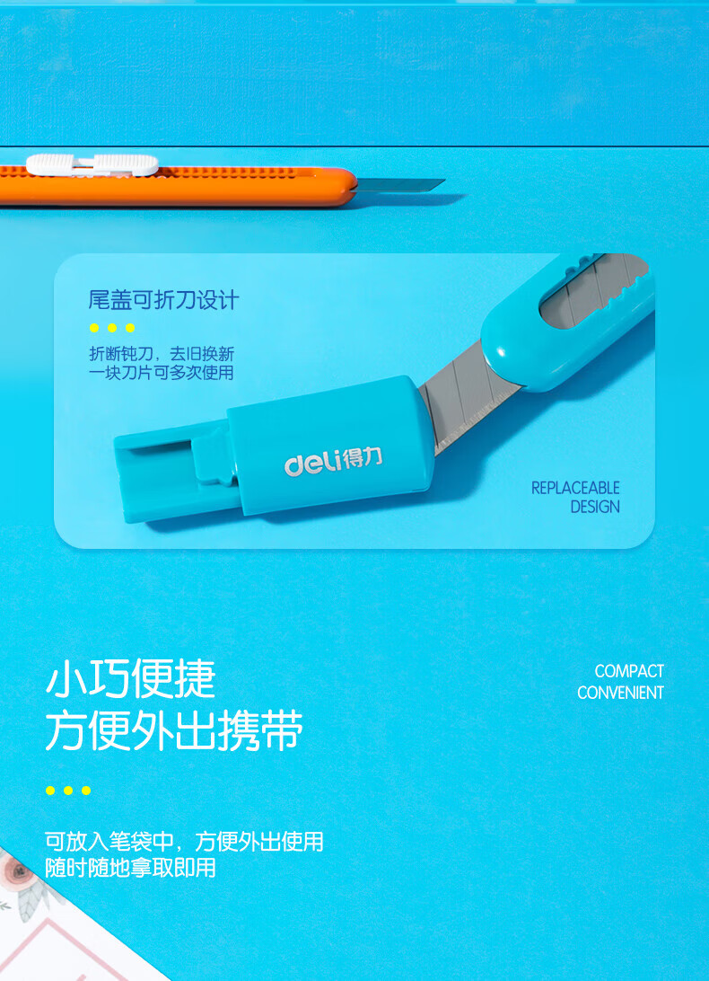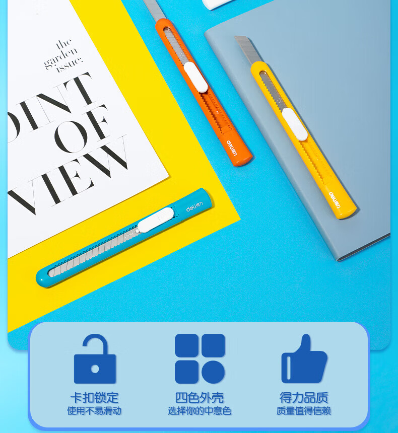 商品名稱:得力2025 小號美工刀 手工課裁剪刀 切紙刀 顏色隨機(jī) 單把裝
