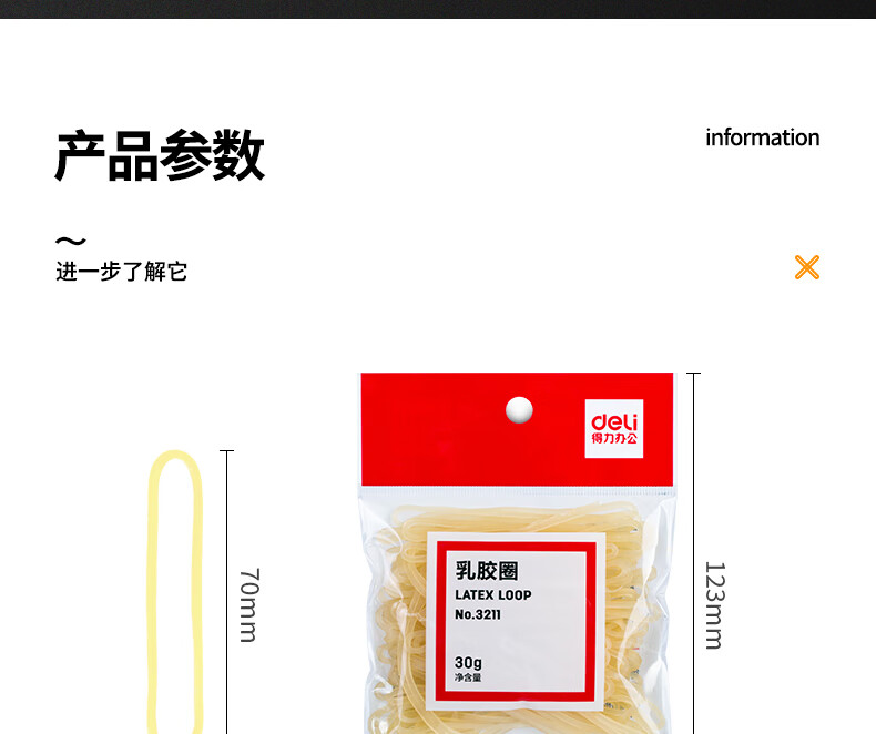 商品名稱:得力3211 橡皮筋 辦公耐用彈力乳膠圈/橡膠圈/牛皮筋 財務(wù)用品 辦公用品 30g/包
