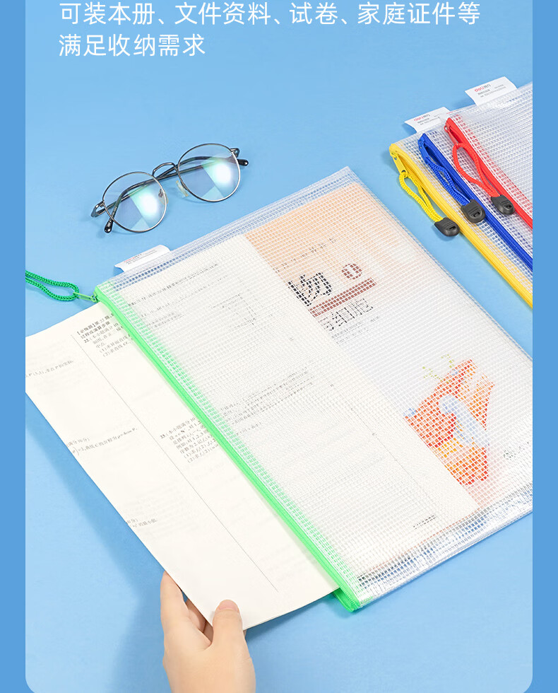 商品名稱:得力5654 網(wǎng)格拉鏈袋 A4收納袋透明文件袋資料袋科目袋學(xué)科袋 顏色隨機(jī) 單個裝