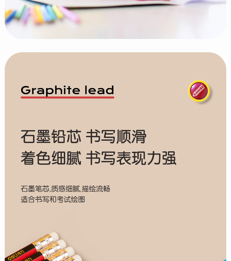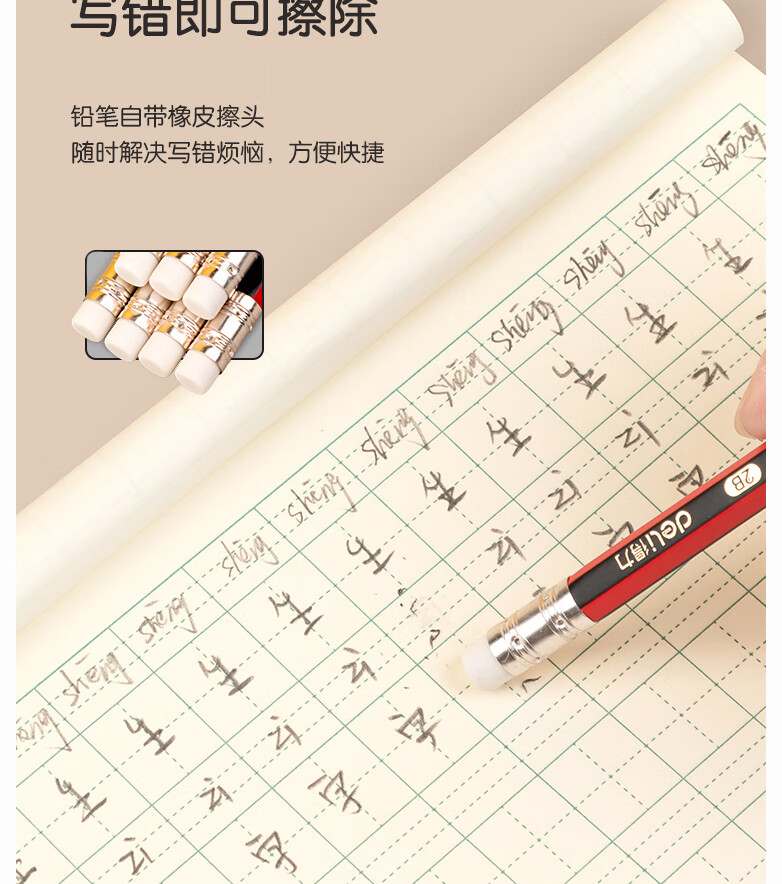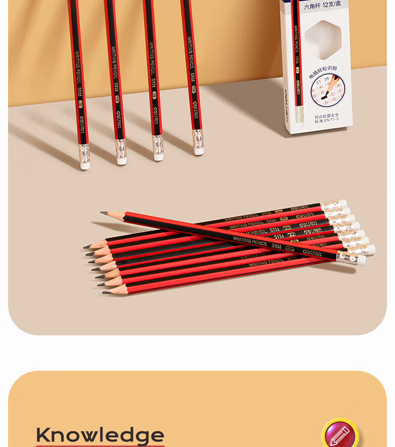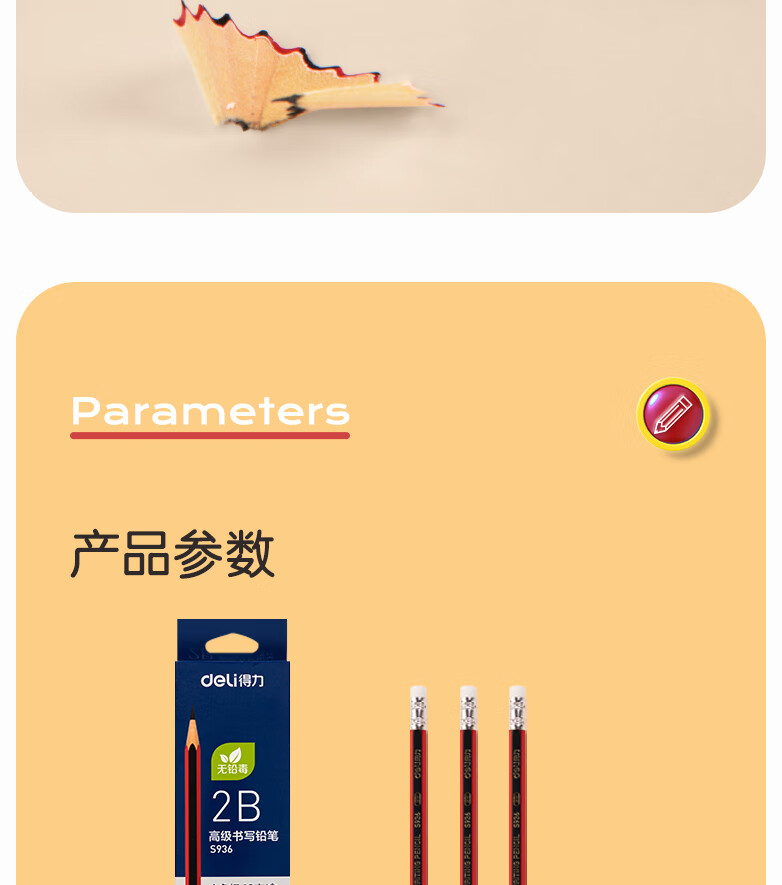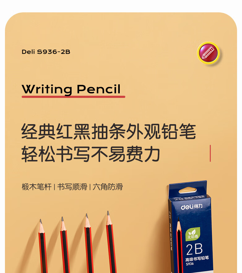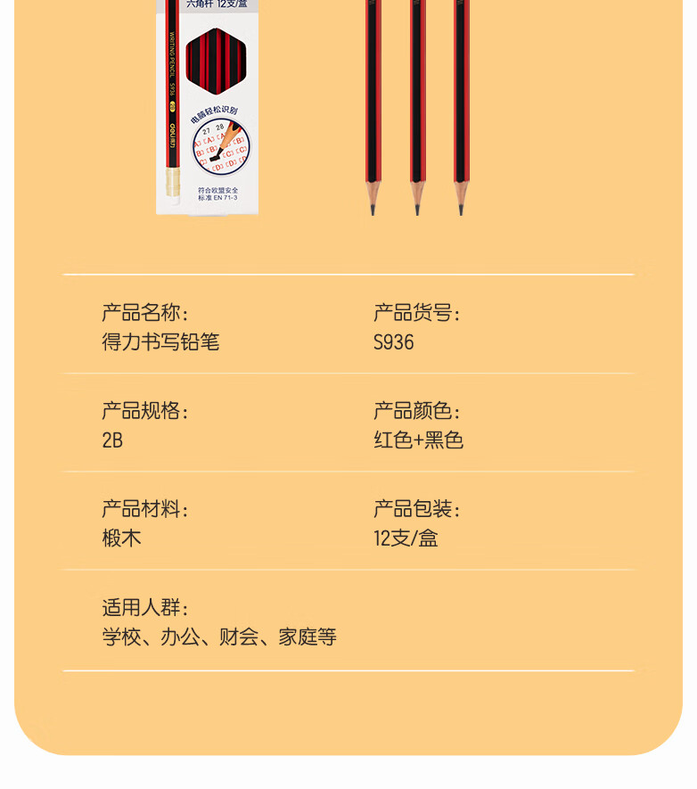 商品名稱:得力S936 鉛筆 2B高級(jí)鉛筆(紅色)(12支/盒)