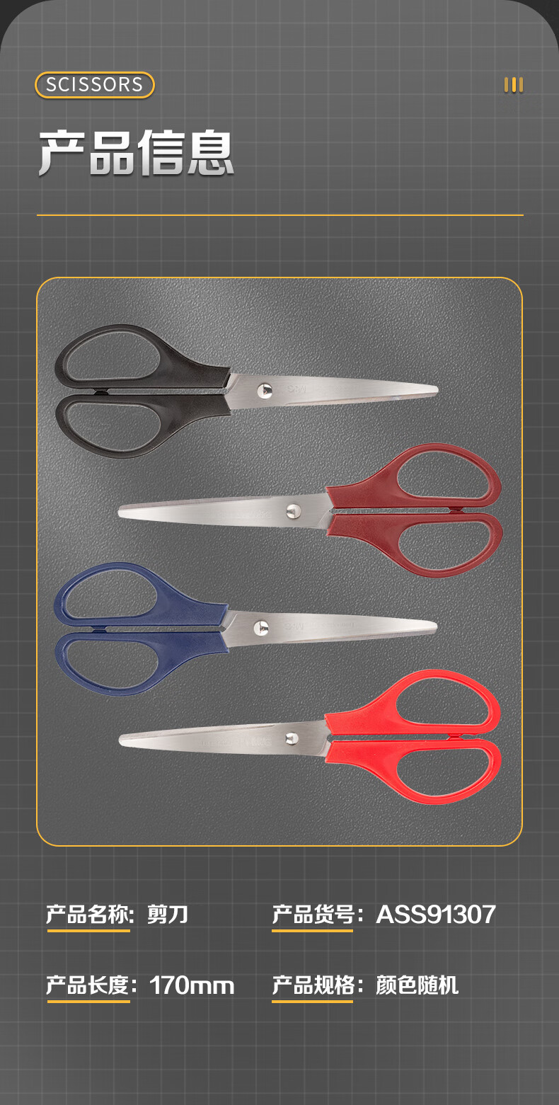 商品名稱:晨光ASS91307 剪刀 170mm中號手工剪紙刀 辦公用品 單把裝 顏色隨機(jī)