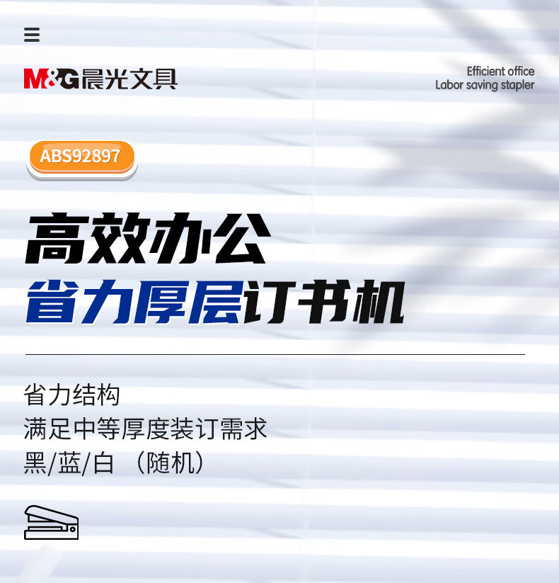 商品名稱:晨光ABS92897 12#厚層訂書機(jī) 商務(wù)省力訂書器 辦公用品 單個(gè)裝 顏色隨機(jī)