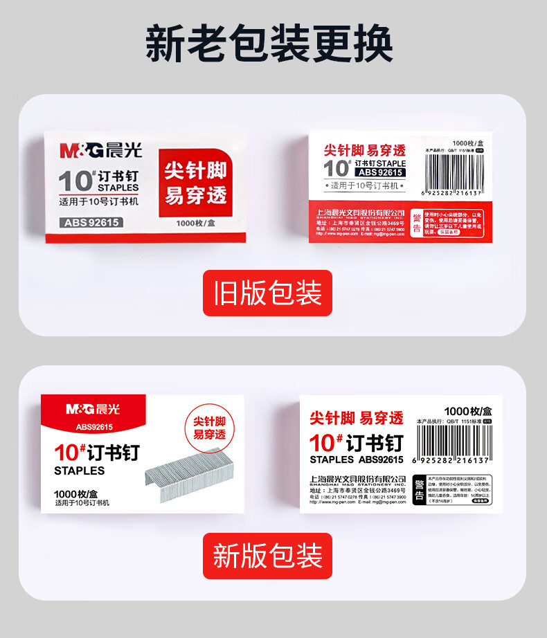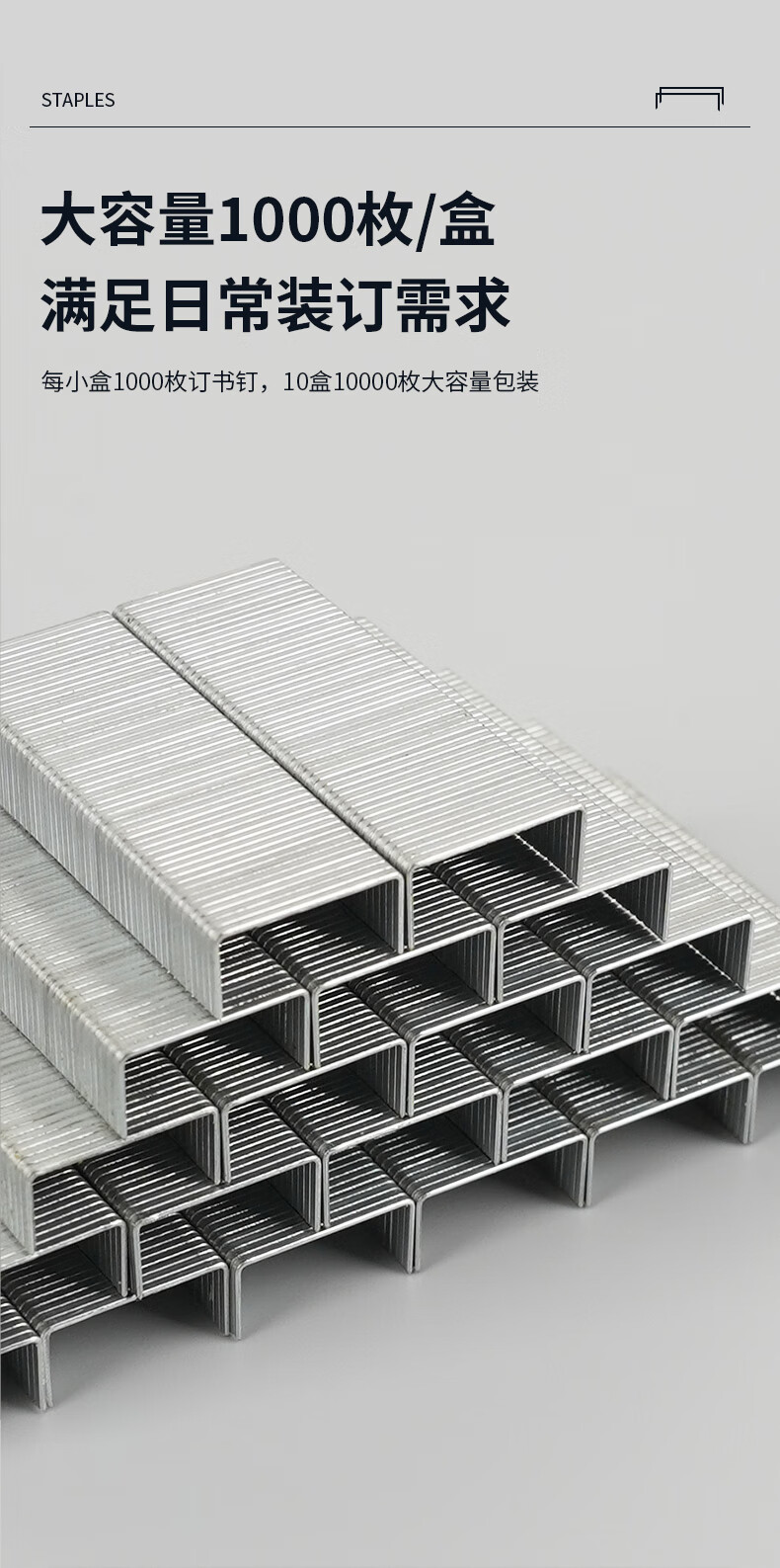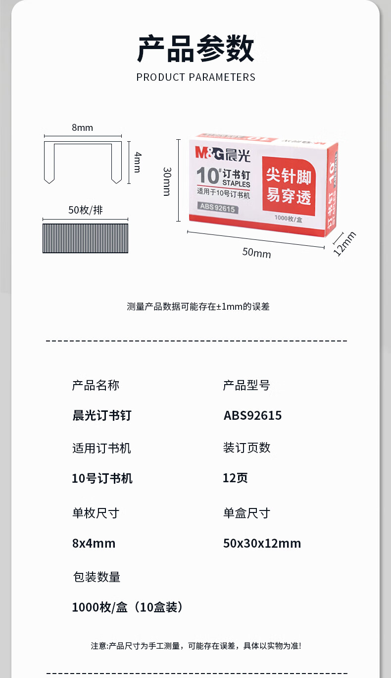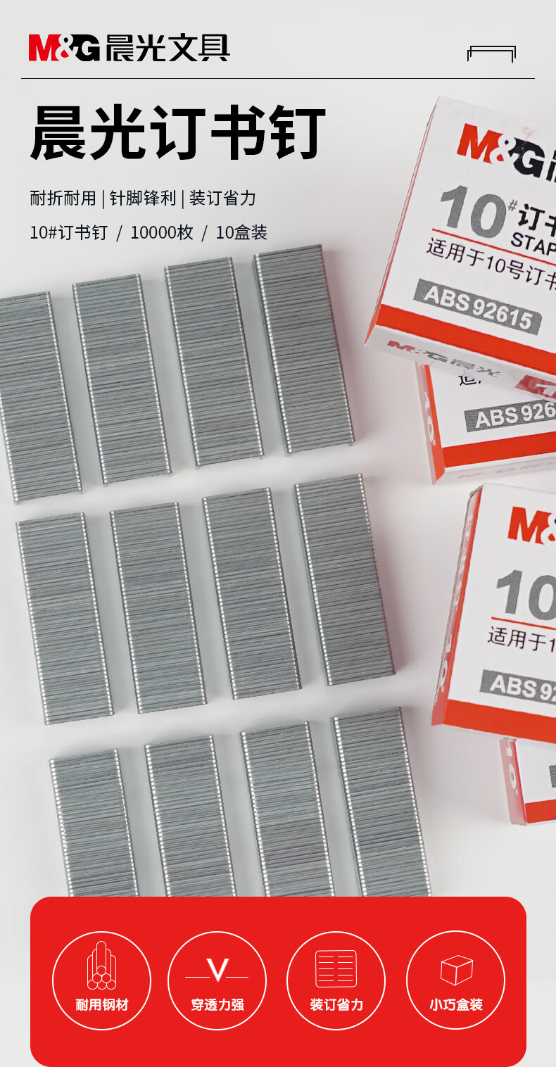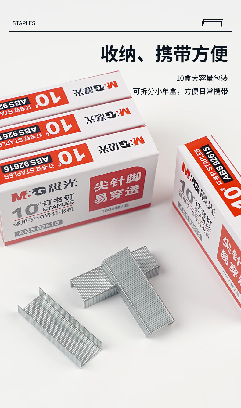 商品名稱(chēng):晨光ABS92615 訂書(shū)釘 10#易穿透訂書(shū)針 辦公用品 1000枚/盒 10盒裝