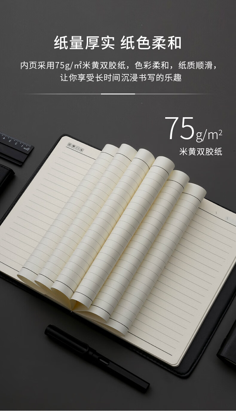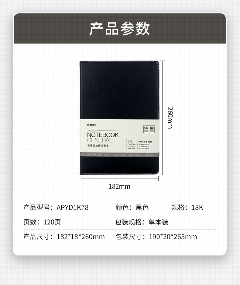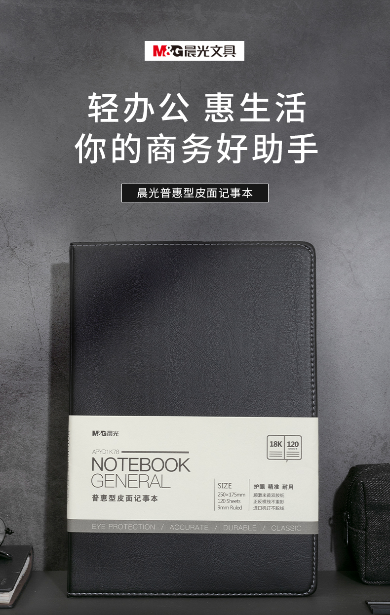 商品名稱:晨光APYD1K78 筆記本 B5/18K會議記錄皮面本 120張黑色商務(wù)記事本 單本裝