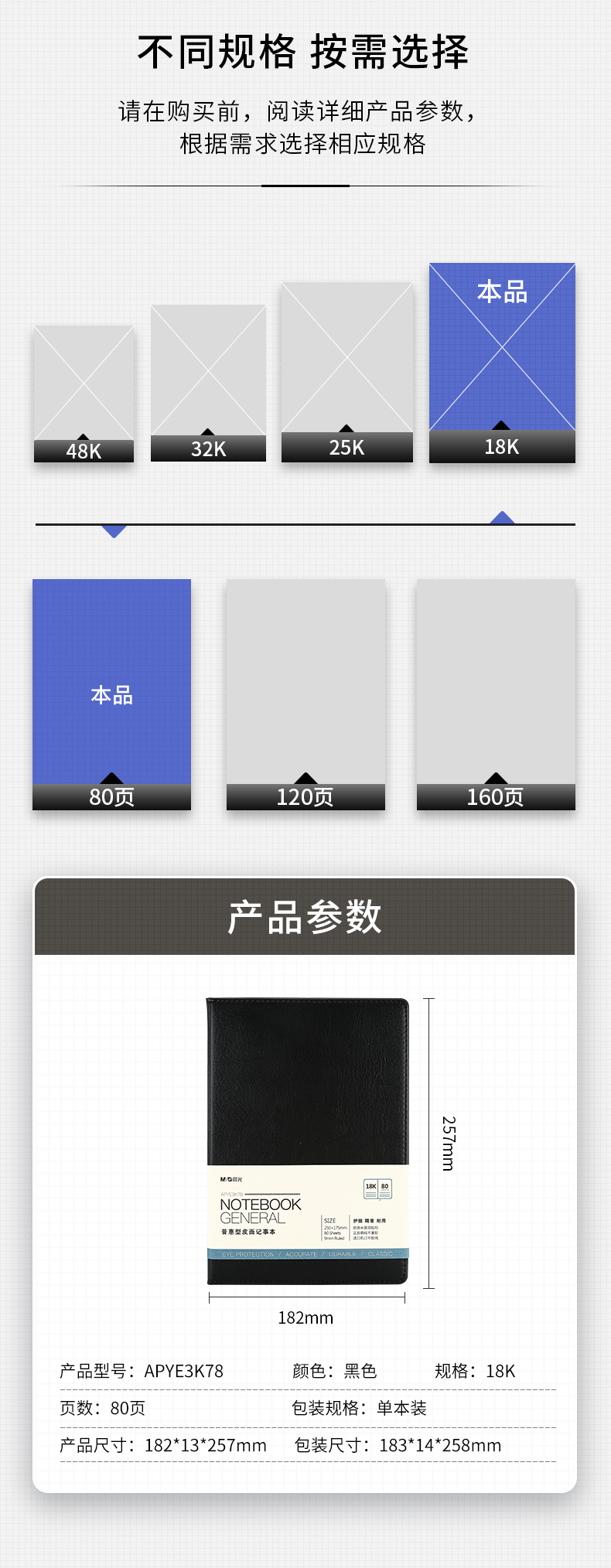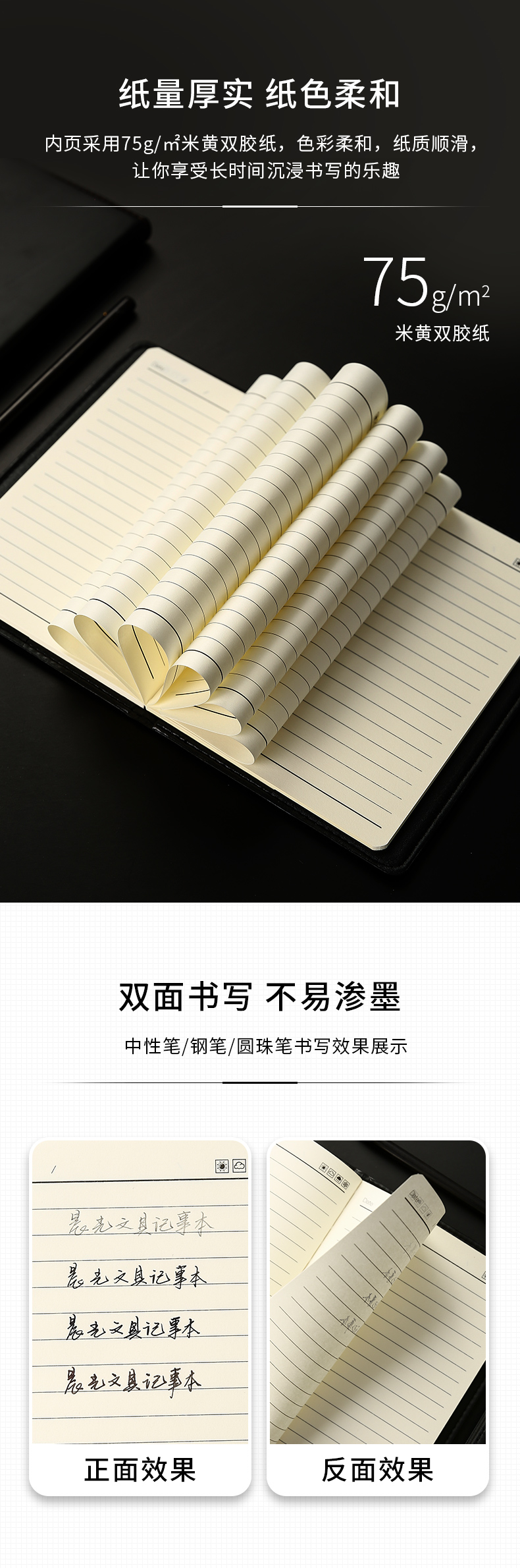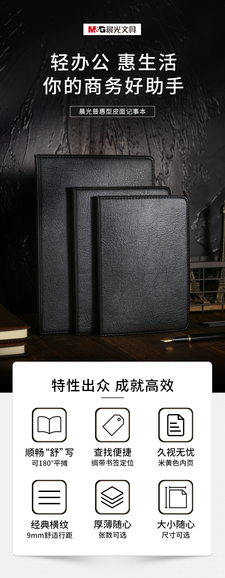 商品名稱:晨光APYE3K78 筆記本 80張黑色會議記錄皮面本 B5/18K商務(wù)記事本 單本裝
