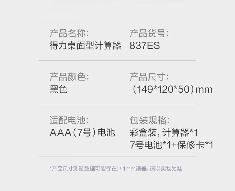 商品名稱:得力837ES 計(jì)算器 12位雙電源大屏幕桌面計(jì)算機(jī) 單個(gè)裝