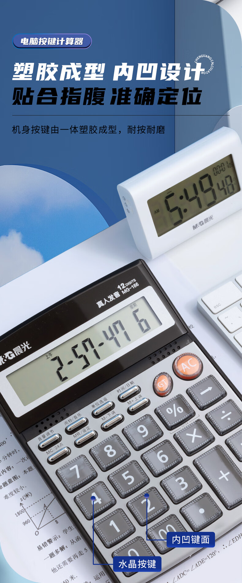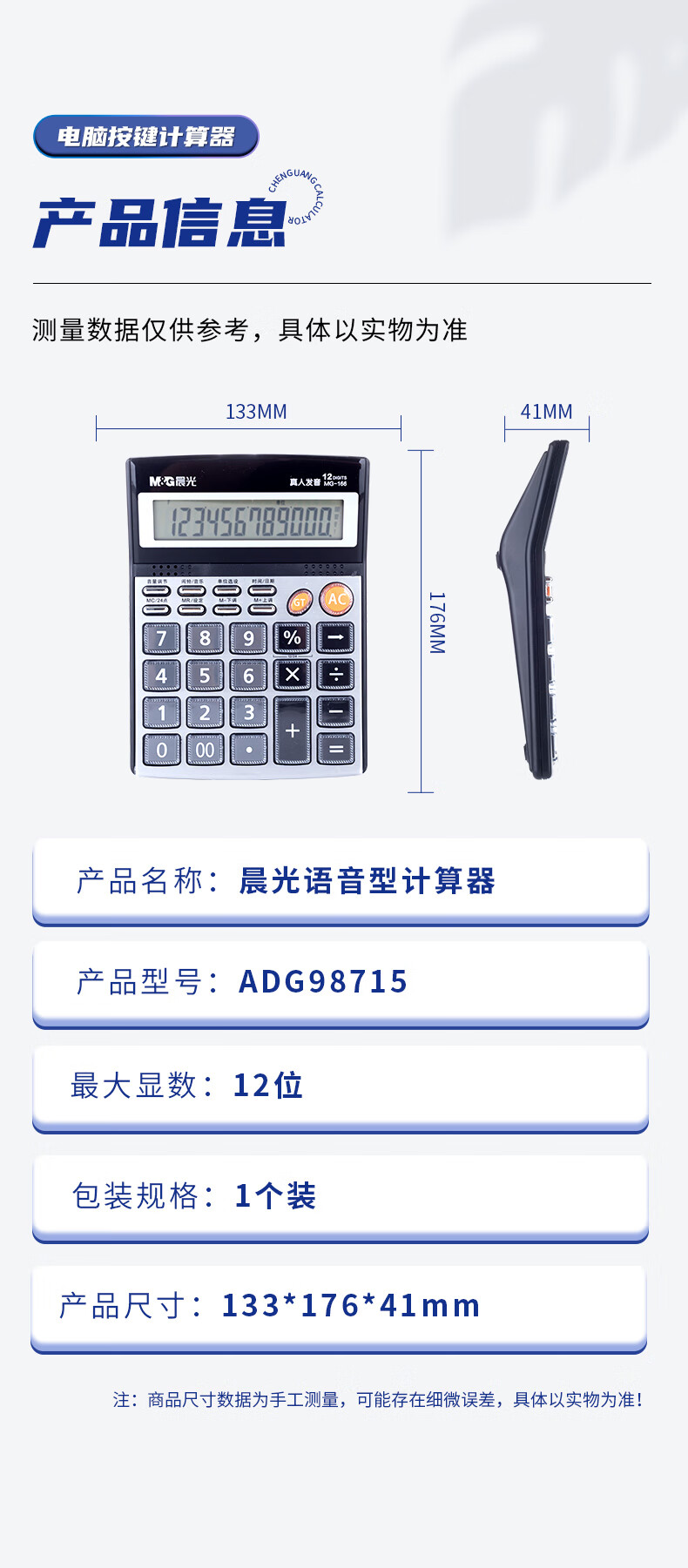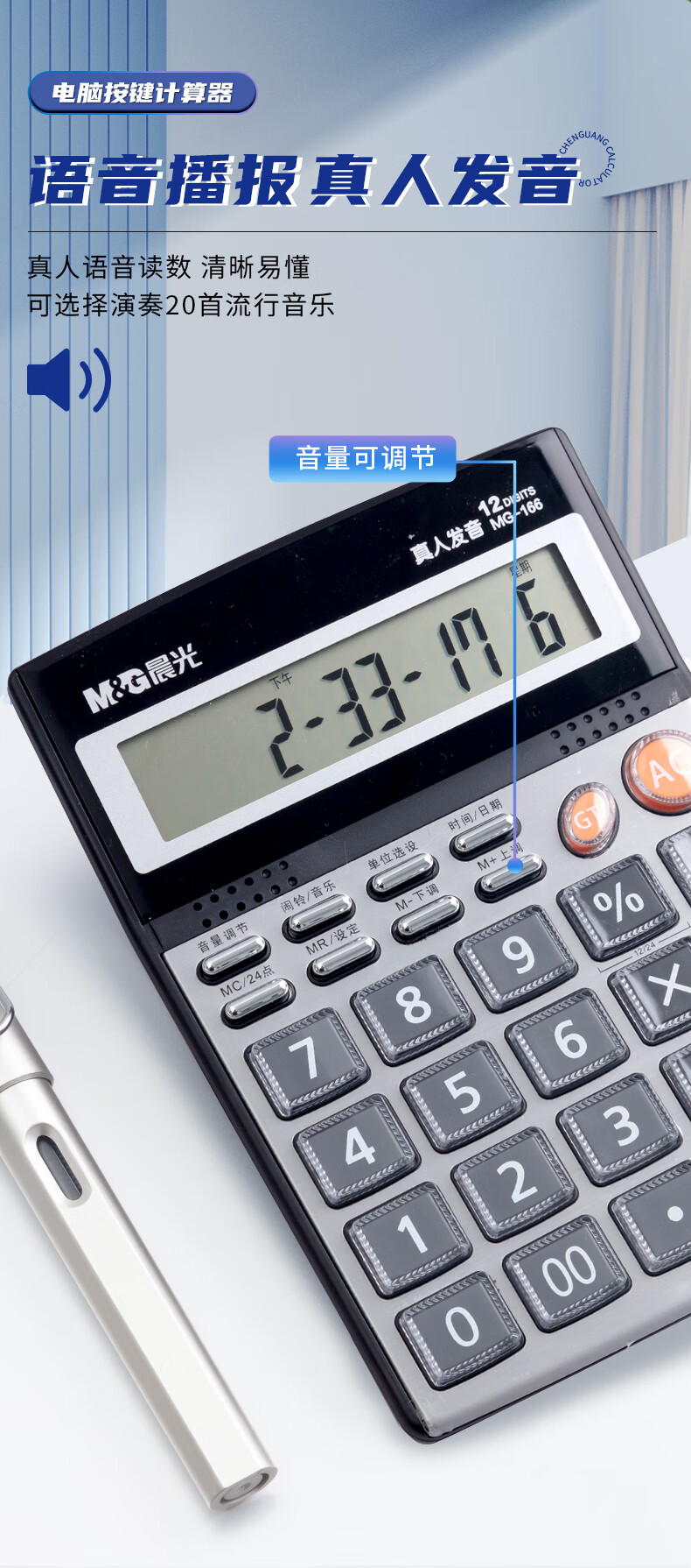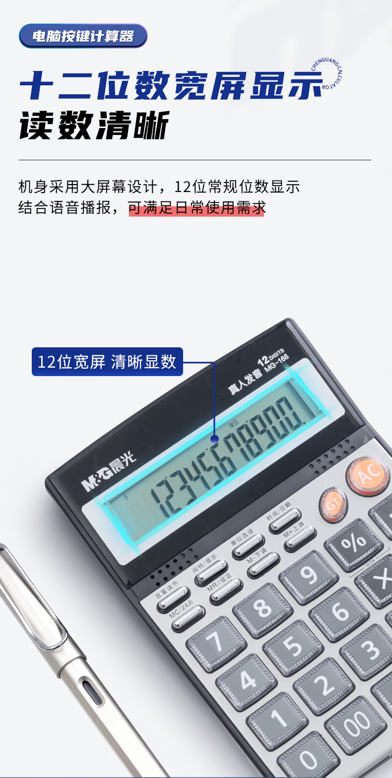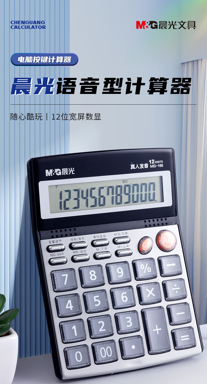 商品名稱:晨光ADG98715 大屏金屬面板真人語音計算器 12位顯示大屏幕桌面計算機 單個裝
