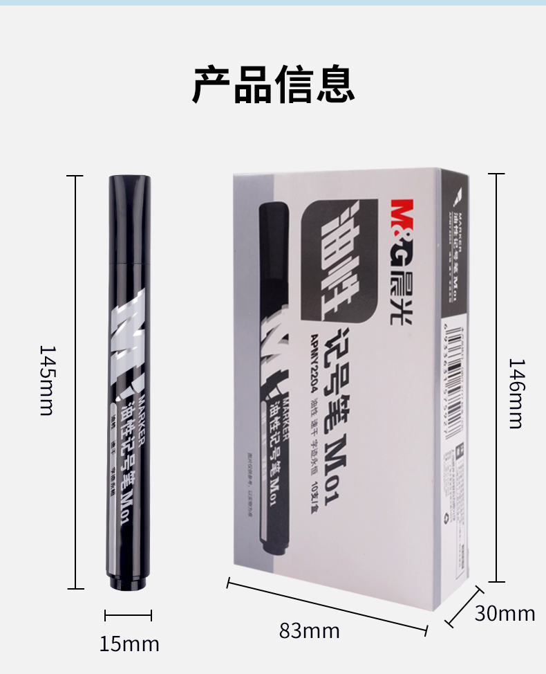 商品名稱:晨光APMY2204 黑色記號筆 M01單頭馬克筆物流筆標(biāo)記大頭筆 10支/盒
