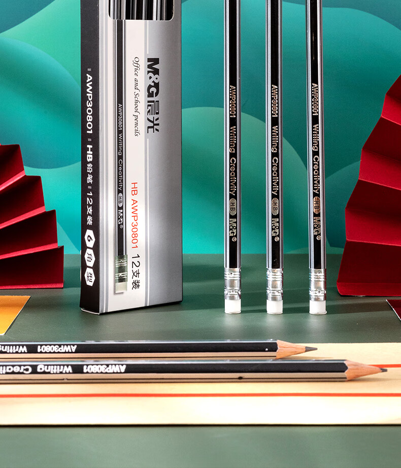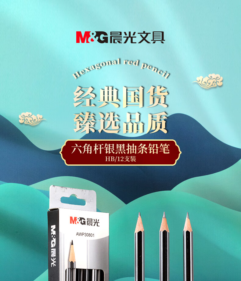 商品名稱:晨光AWP30801 HB鉛筆 銀黑抽條六角木桿鉛筆帶橡皮頭 12支/盒