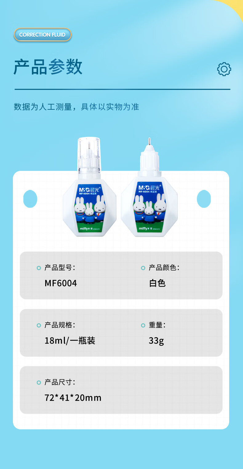 商品名稱:晨光MF6004 涂改液 18ml便攜修正液改正液 米菲系列修正筆 單支裝