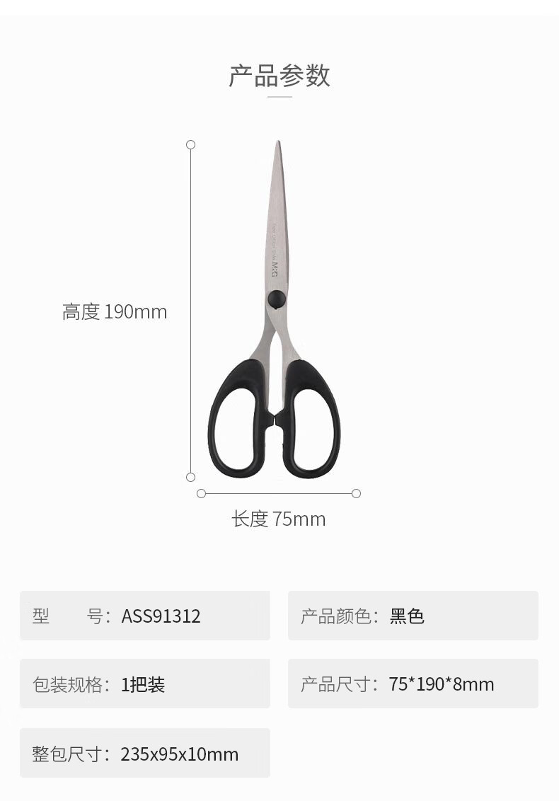 商品名稱(chēng):晨光ASS91312 黑色剪刀 195mm經(jīng)典手工剪紙刀辦公剪子 單把裝