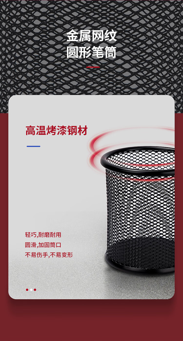 商品名稱:得力9172 金屬網(wǎng)紋圓形筆筒 簡約創(chuàng)意桌面收納盒 辦公用品 黑色 單個裝