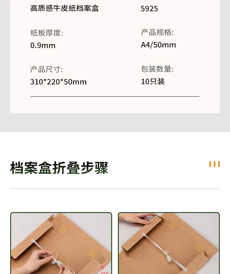 商品名稱:得力5925 牛皮紙檔案盒 50mm純漿250g加厚文件盒 財(cái)務(wù)用品 10只/包