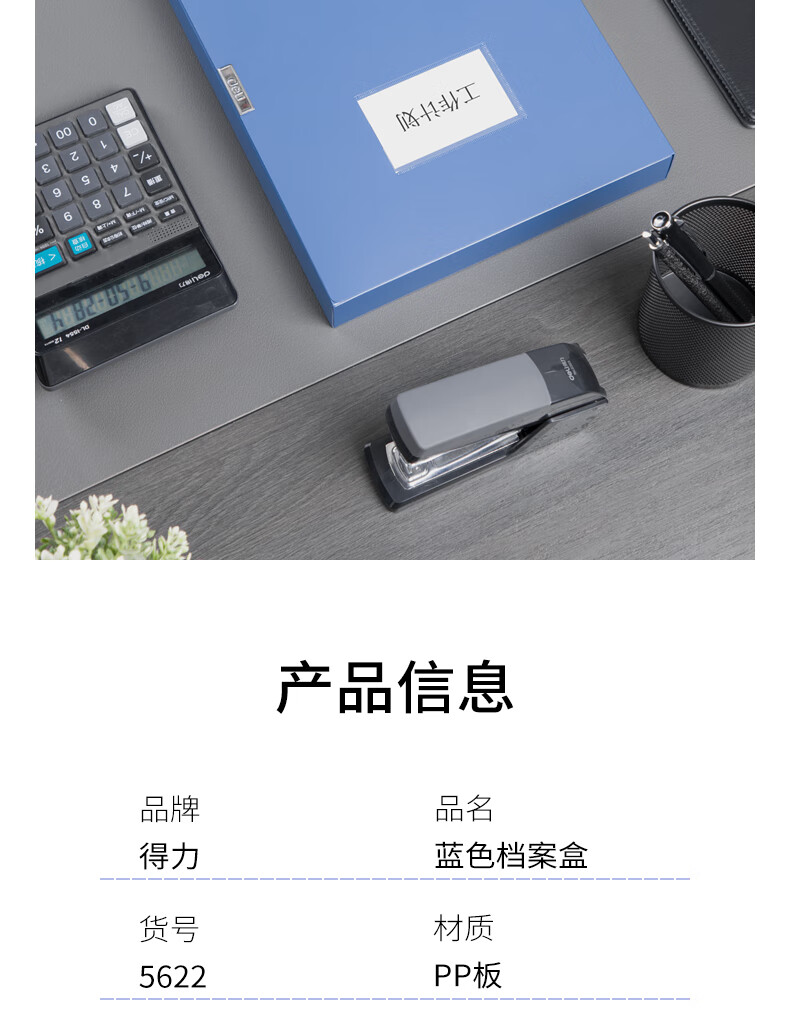商品名稱:得力5622 檔案盒 35mmA4加厚塑料文件盒資料盒財務(wù)憑證盒 單只裝