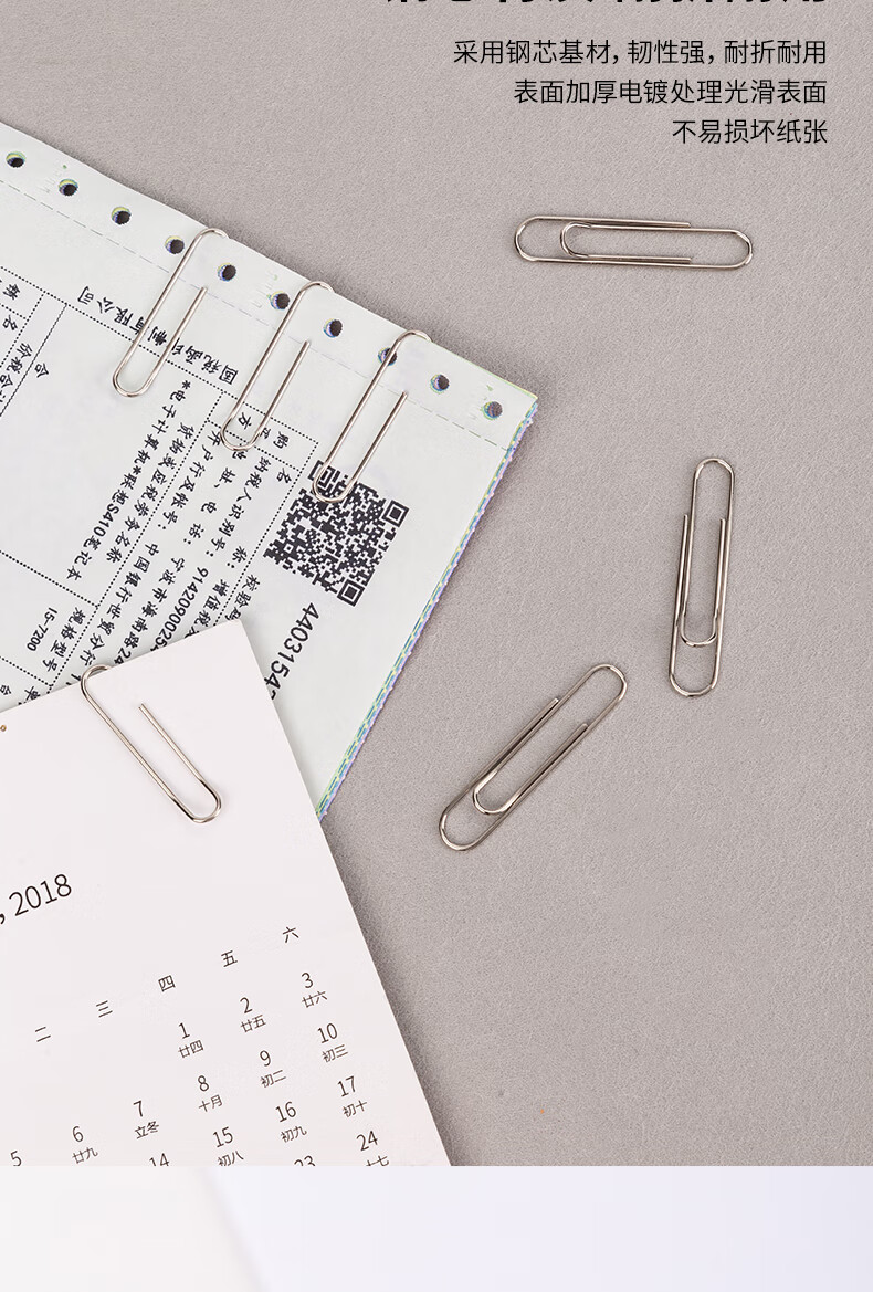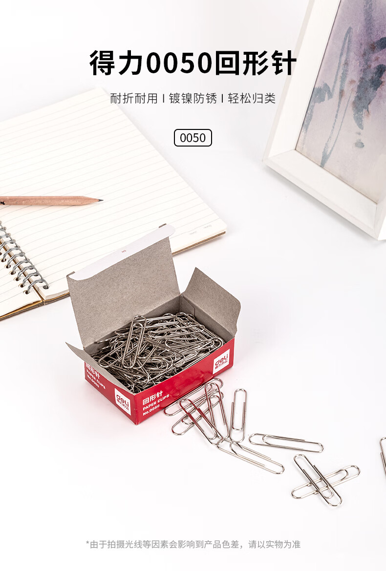 商品名稱:得力0050 回形針 50mm大號(hào)電鍍金屬曲別針 辦公用品文件收納 100枚/盒