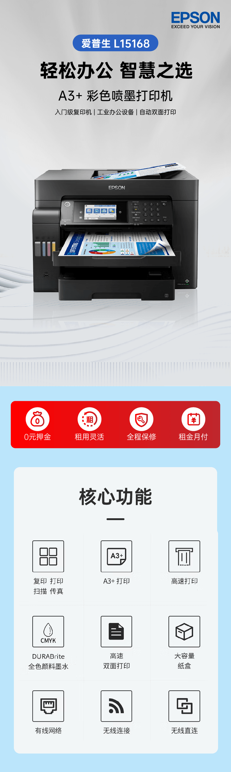 商品名稱:愛普生彩色噴墨復(fù)合機出租 茂名多功能一體機租賃 彩色/A3/中低速(月)