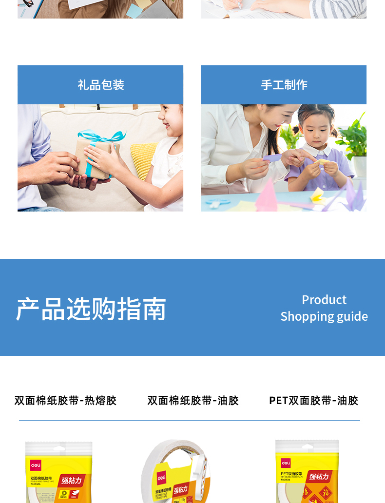 商品名稱:得力30400 高粘棉紙雙面膠帶 9mm*10y白色 32卷/袋