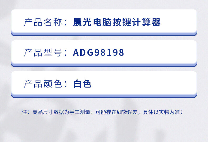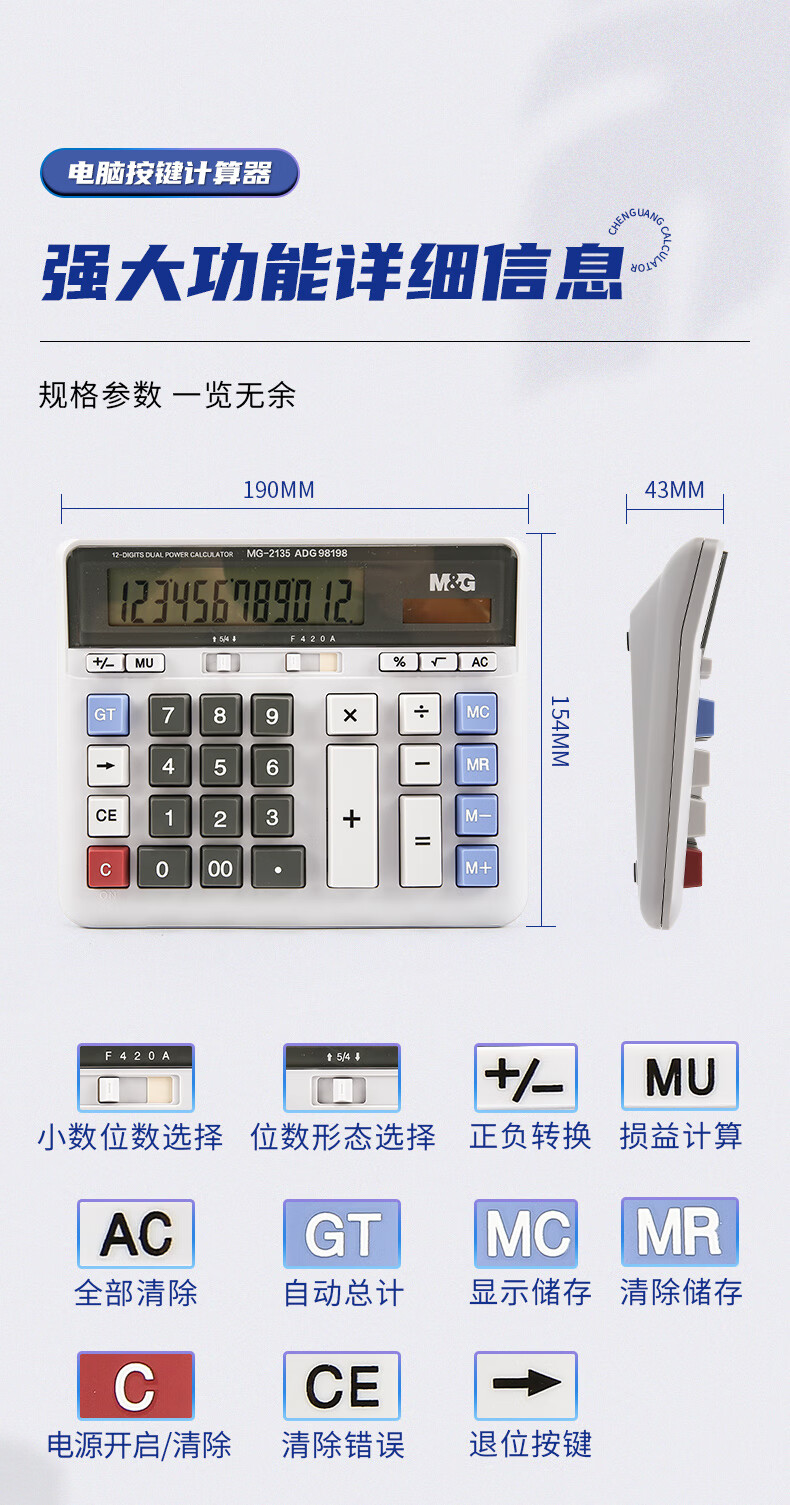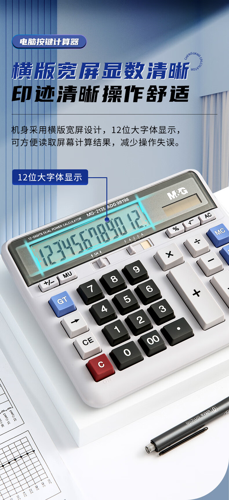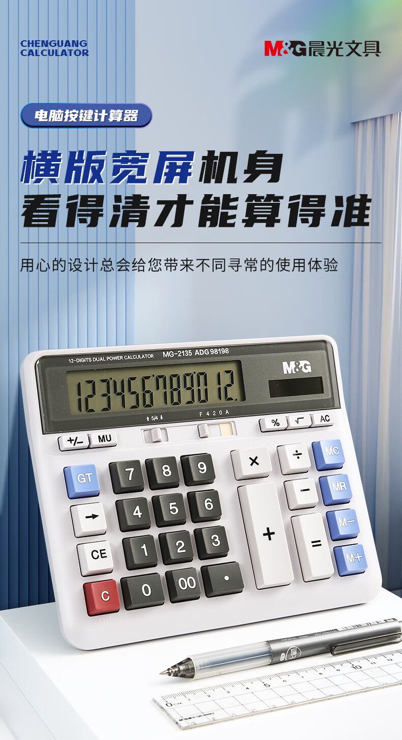 商品名稱:晨光ADG98198 計(jì)算器 12位大屏雙電源計(jì)算機(jī) 單個(gè)裝