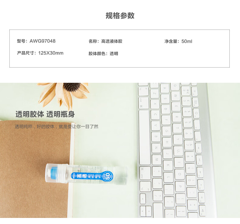 商品名稱:晨光AWG97048 液體膠 50ml高粘度時尚透明強(qiáng)力膠水(凸點PVC涂膠面) 單支裝