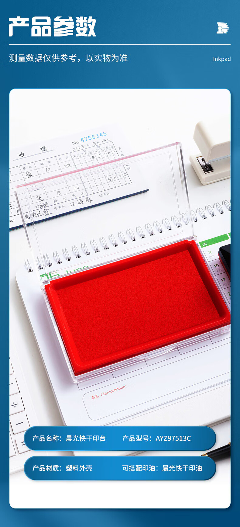 商品名稱:晨光AYZ97513 快干印臺(tái) 138*88mm透明外殼方形快干印臺(tái)印泥 紅色單個(gè)裝