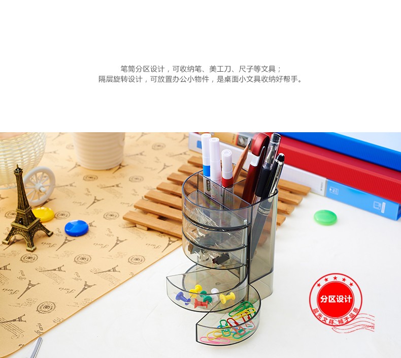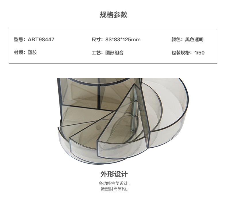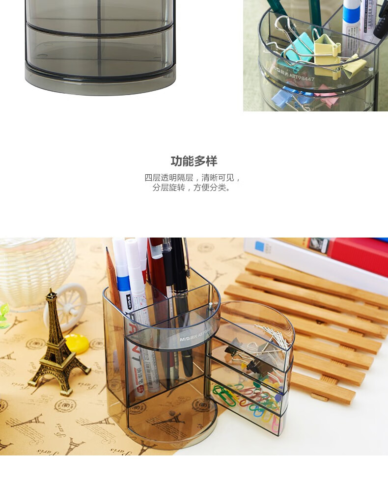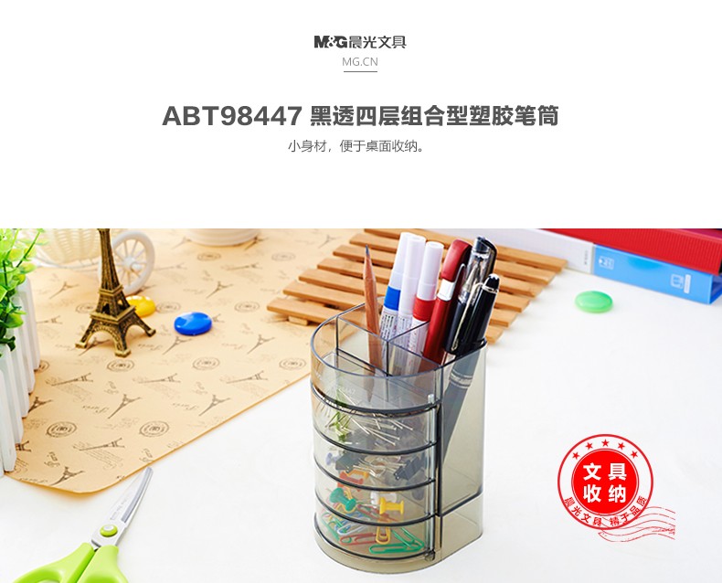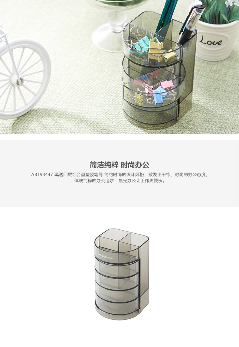 商品名稱:晨光透明四層時尚筆筒 多功能桌面收納盒 黑色 單個裝ABT98447