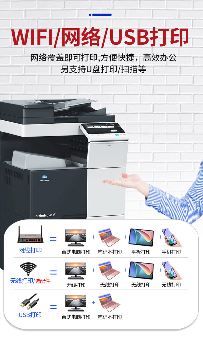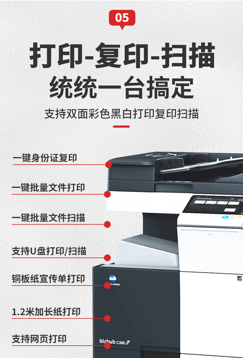 商品名稱:柯尼卡美能達C368彩色復印機租賃 大型激光打印機出租